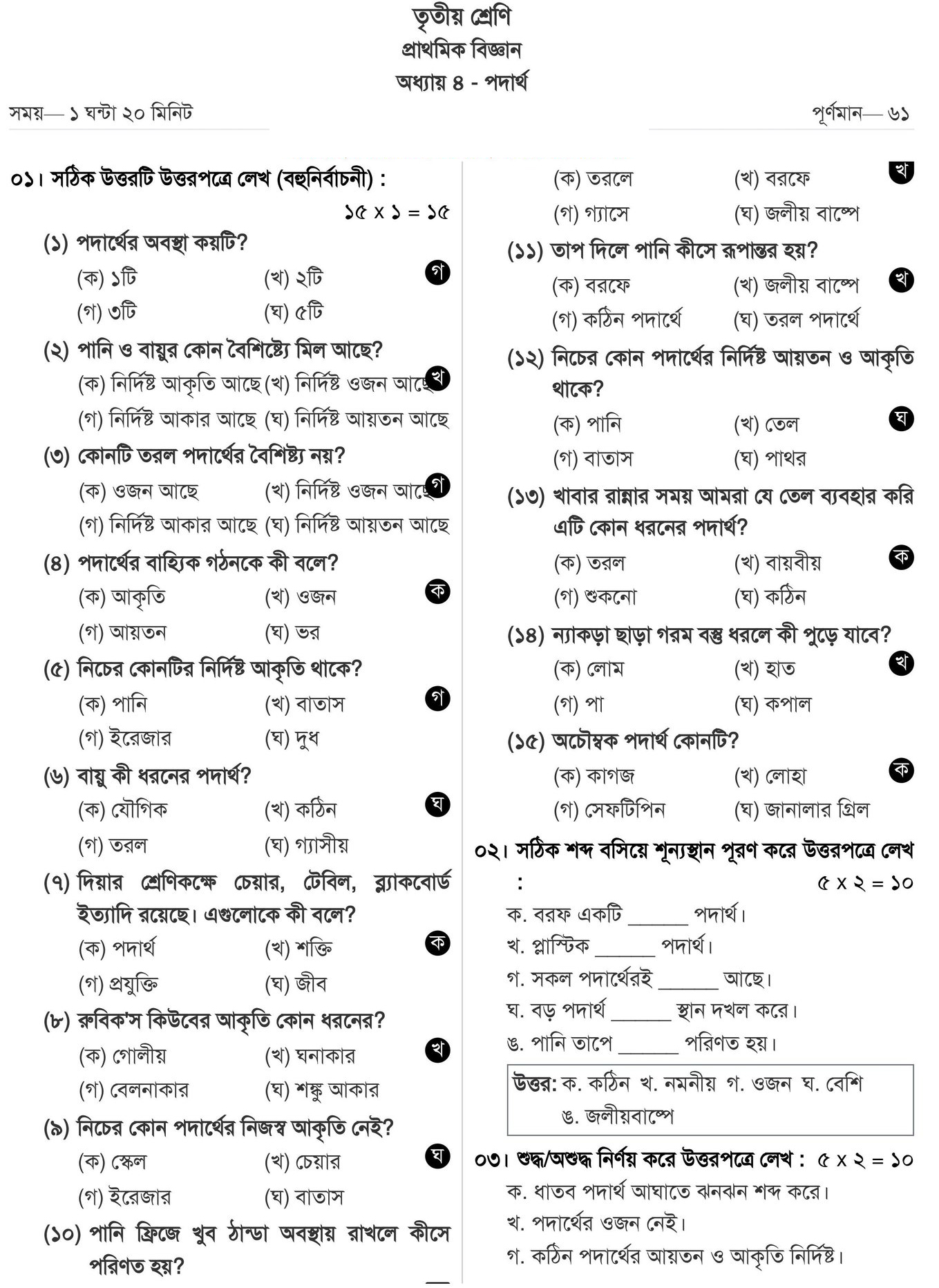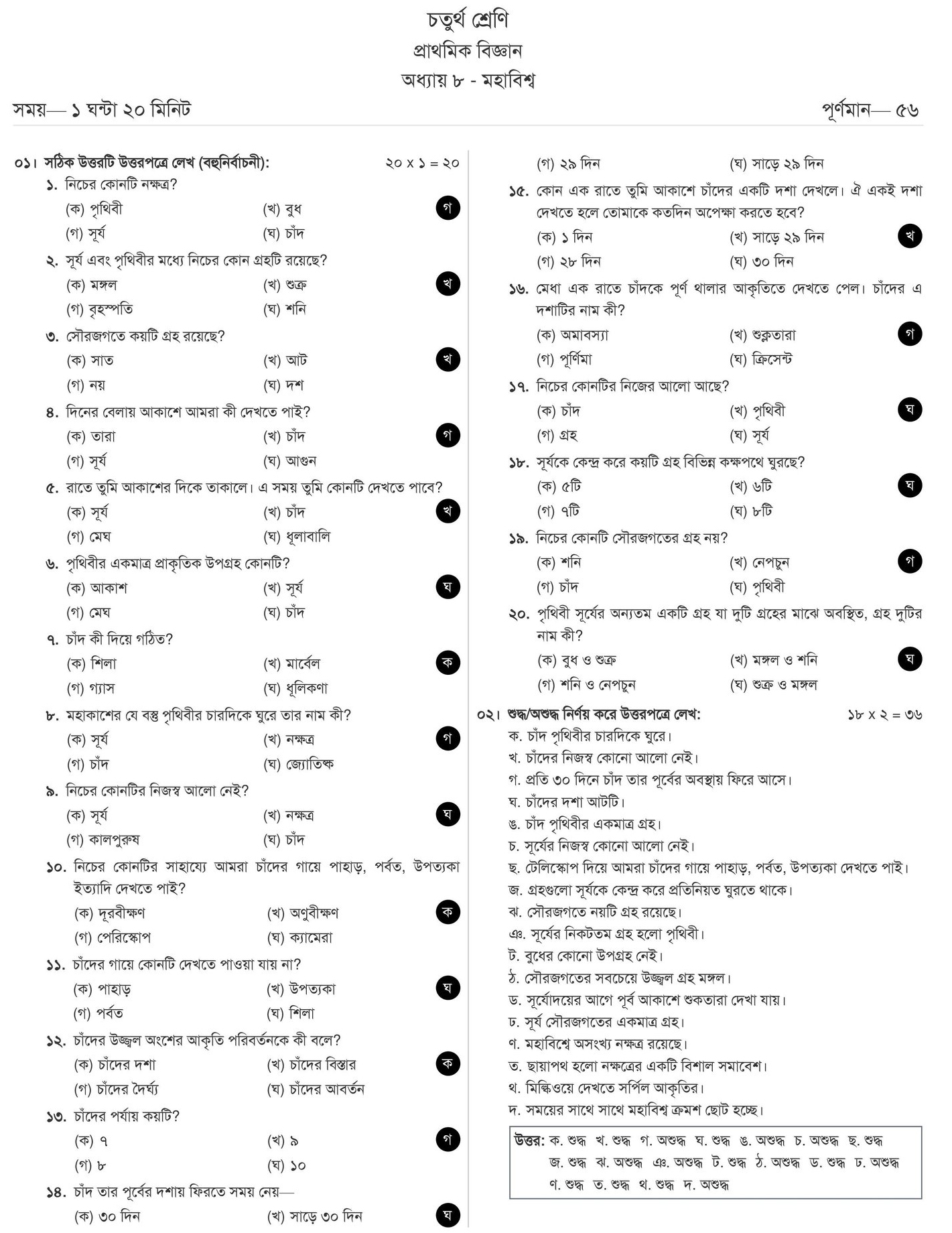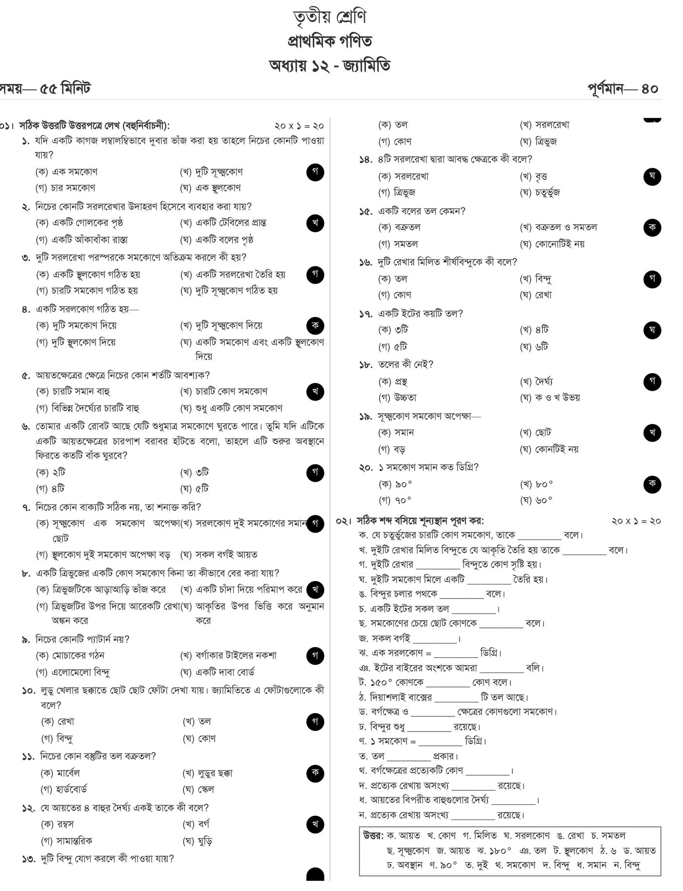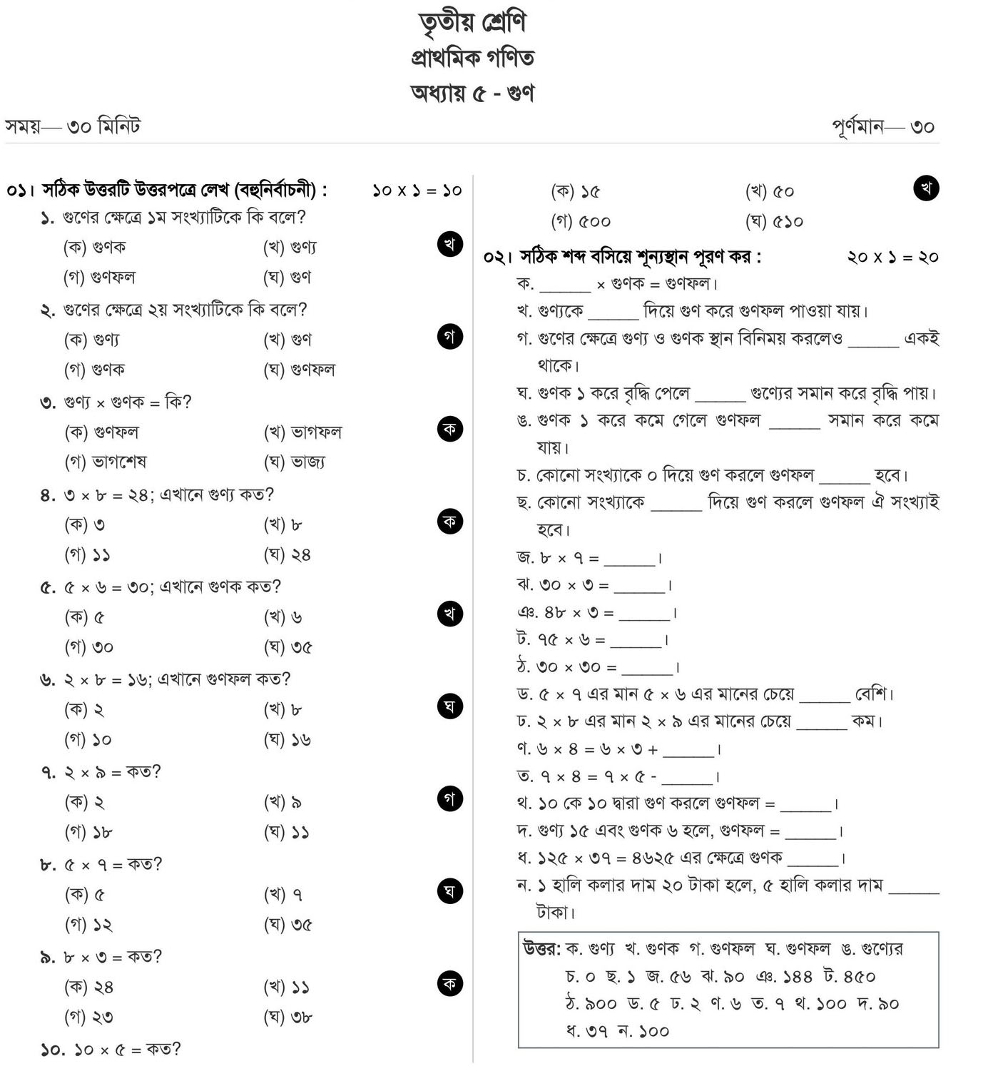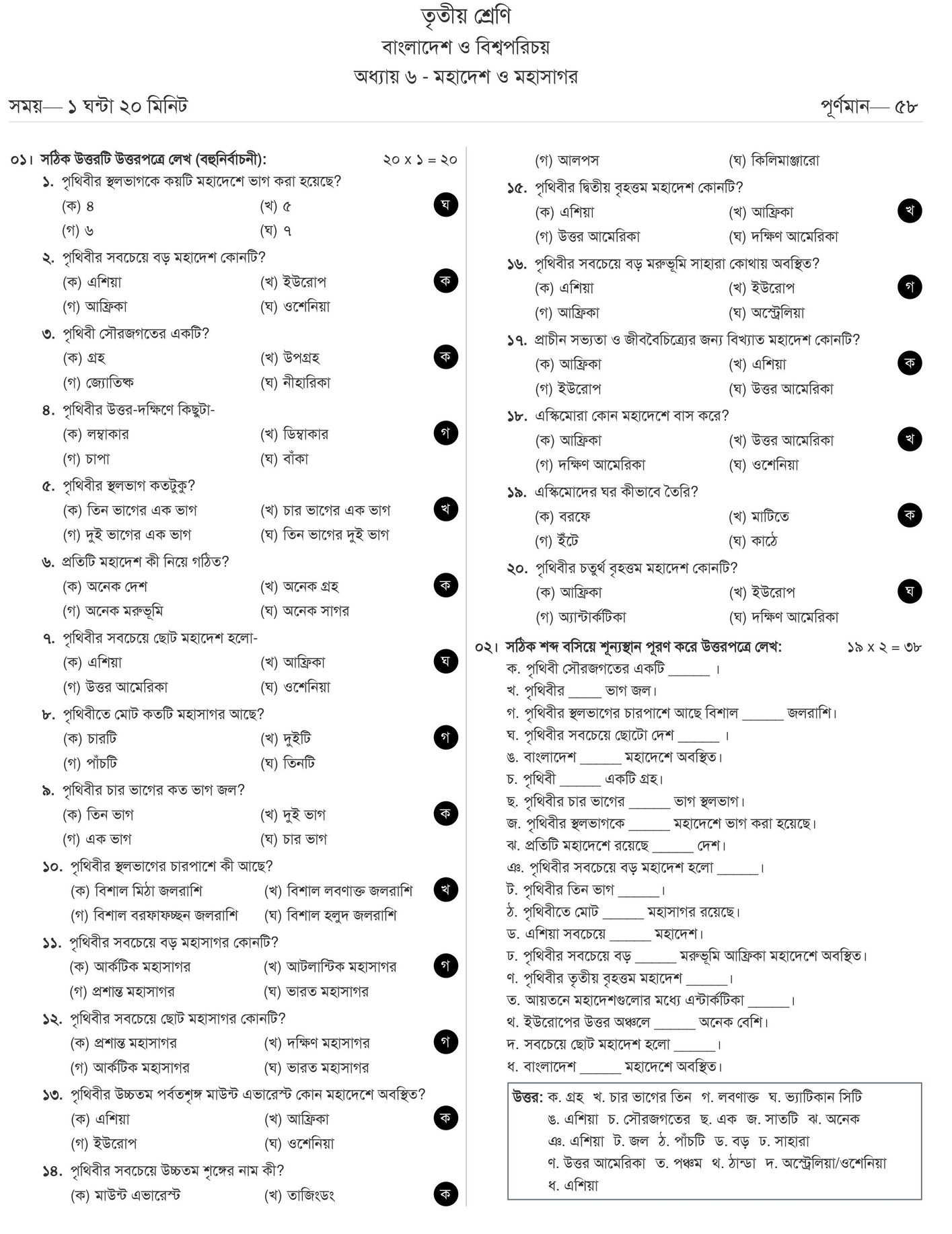 প্রশ্নোত্তরগুলো শুধু তৃতীয়, চতুর্থ ও পঞ্চম শ্রেণির শিক্ষার্থীদের জন্য