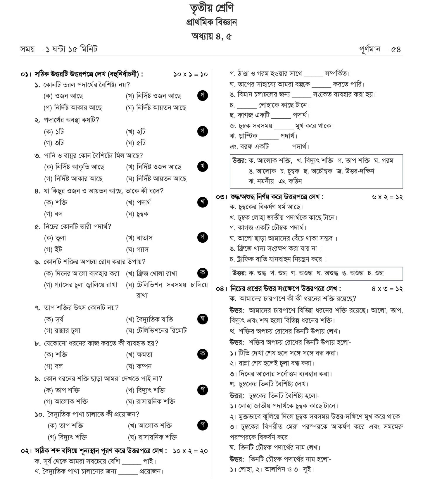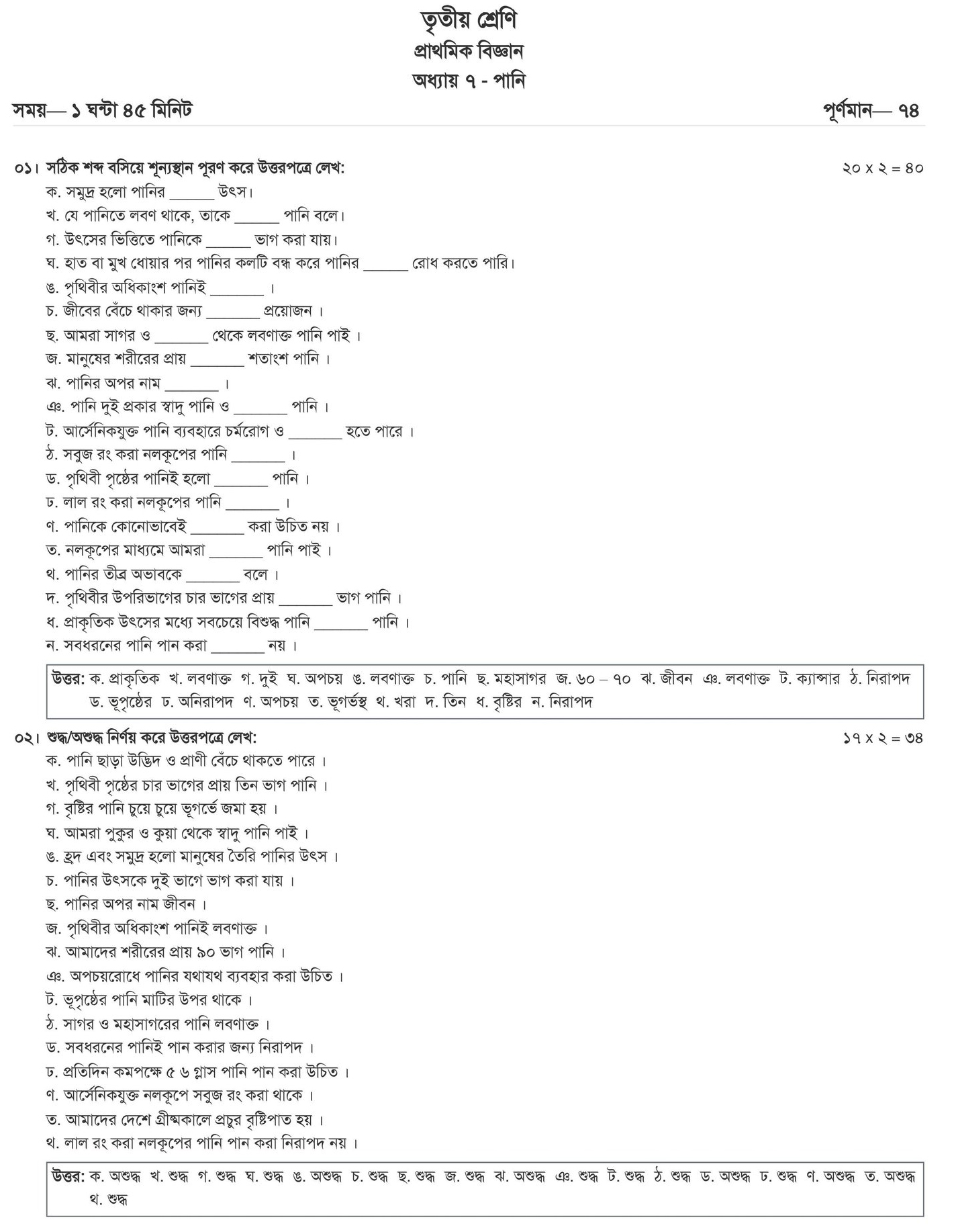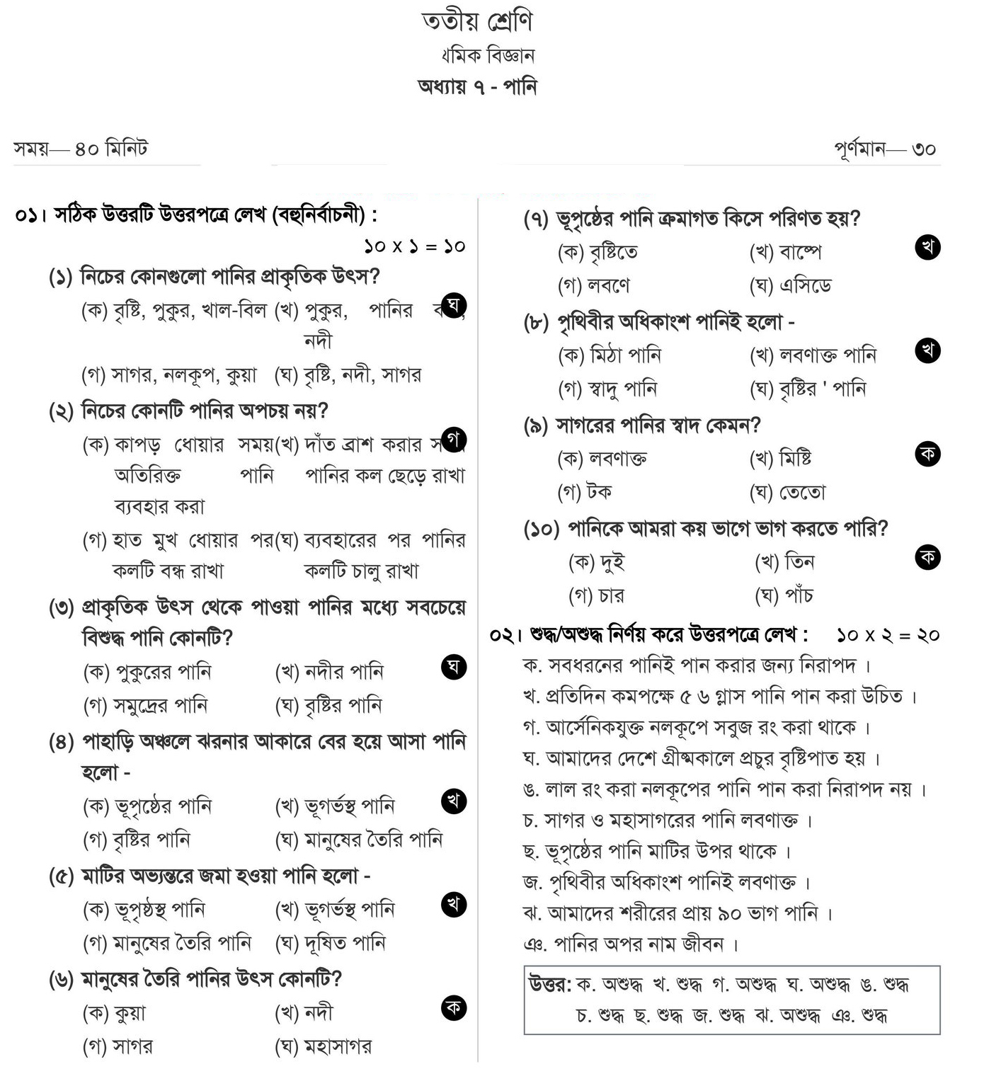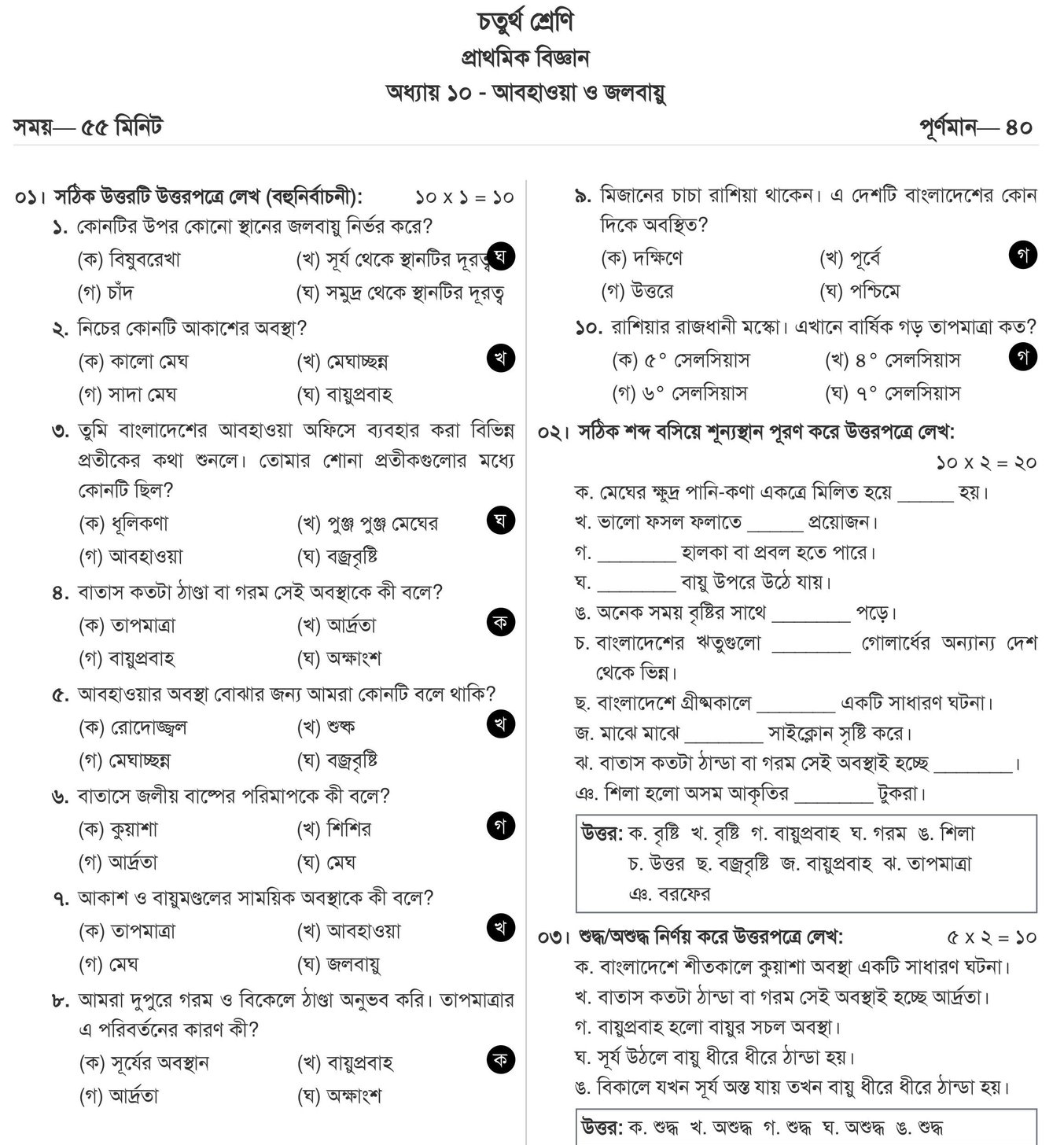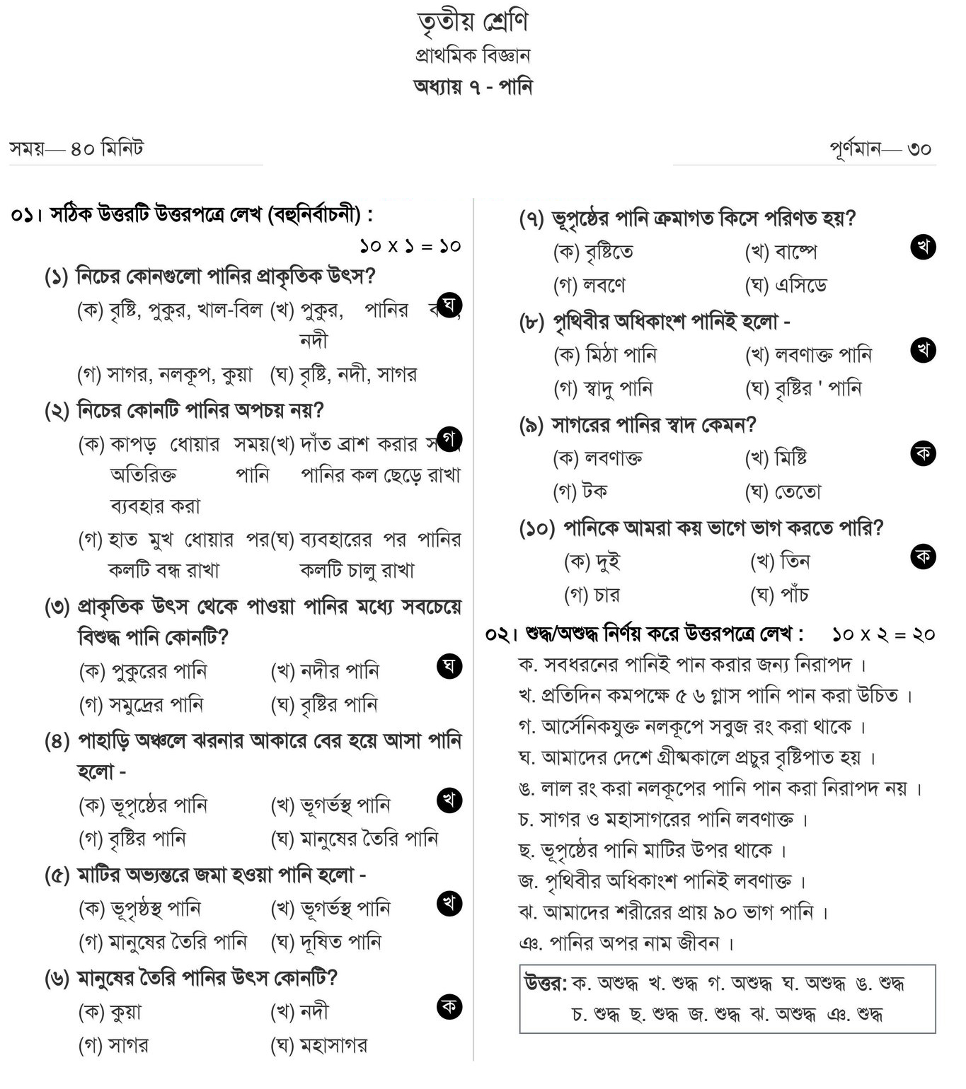 প্রশ্নোত্তরগুলো শুধু তৃতীয়, চতুর্থ ও পঞ্চম শ্রেণির শিক্ষার্থীদের জন্য