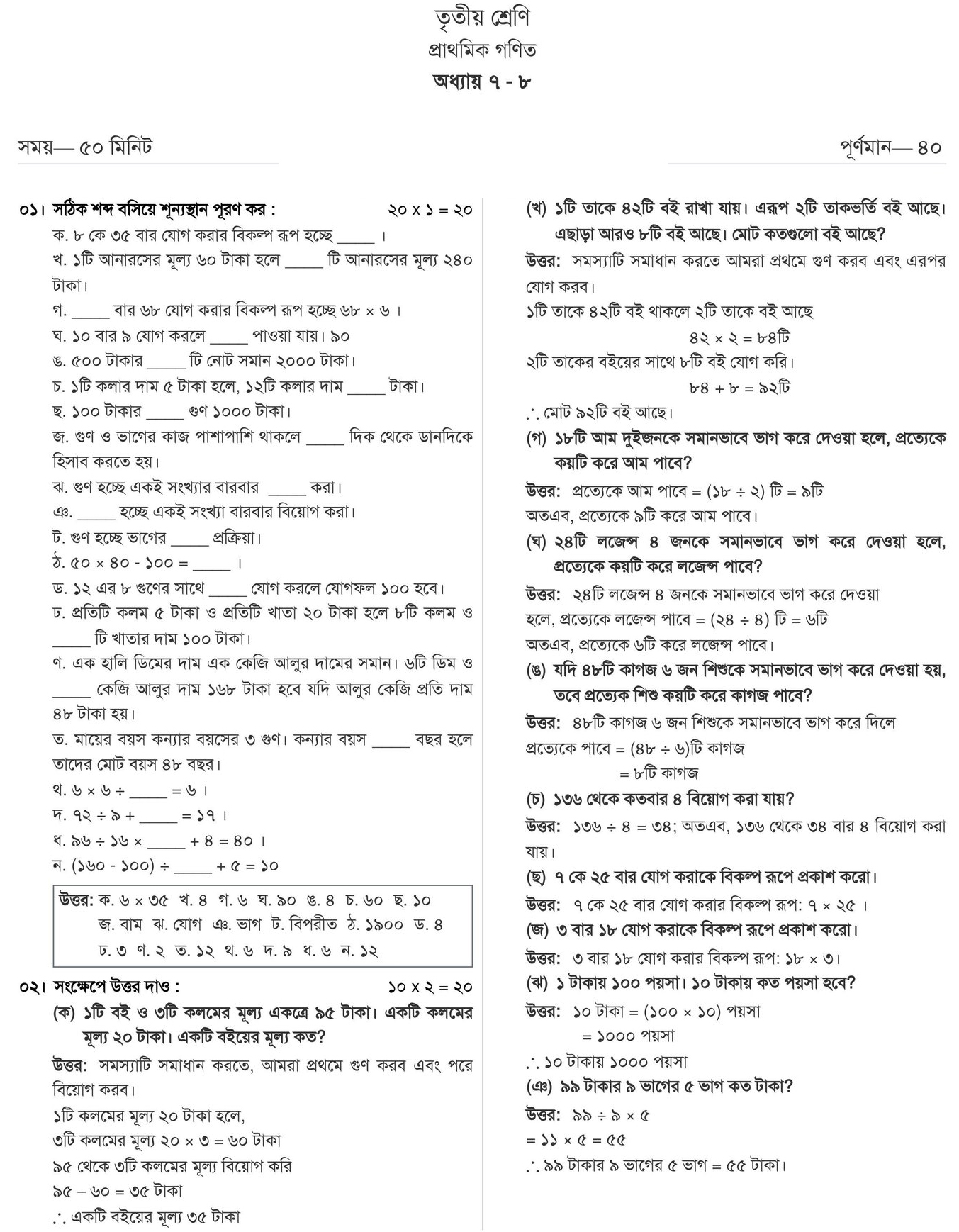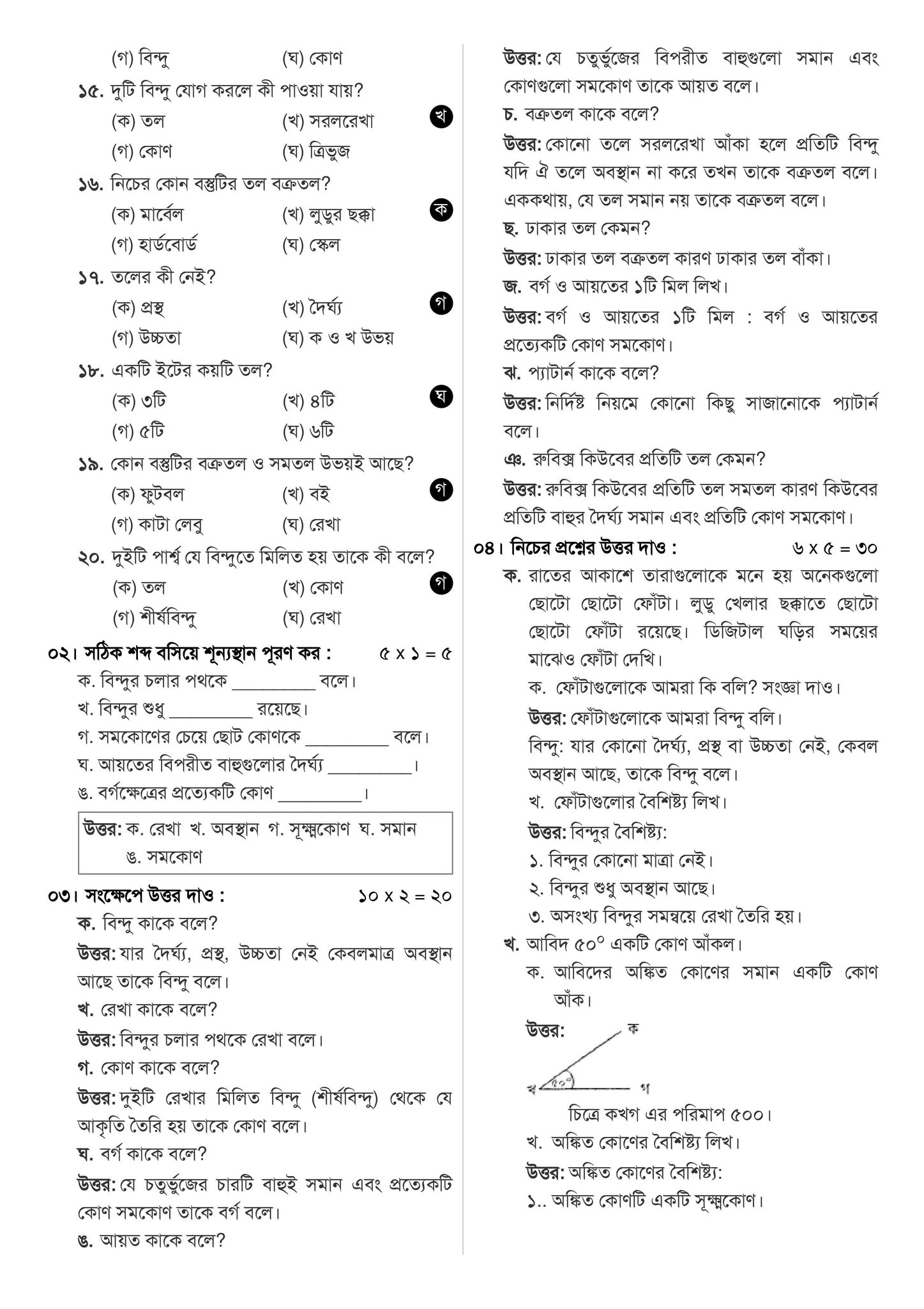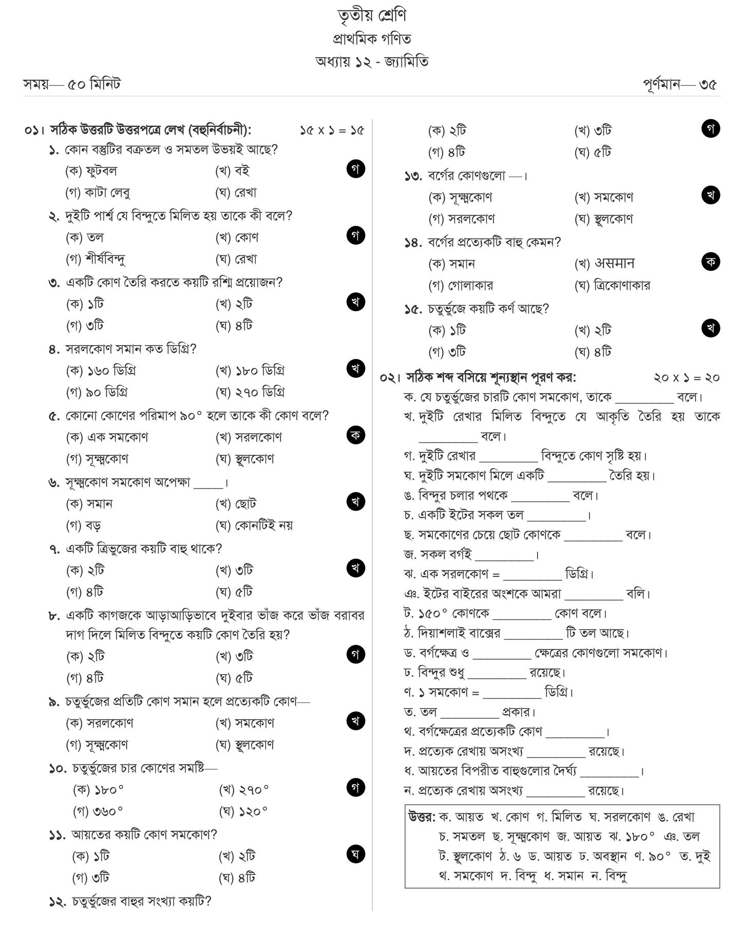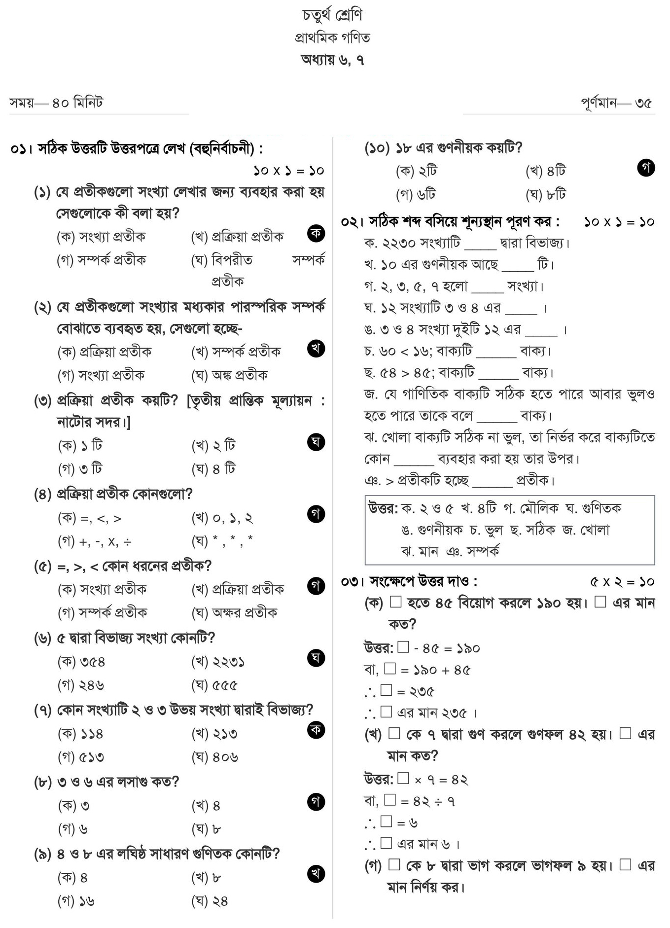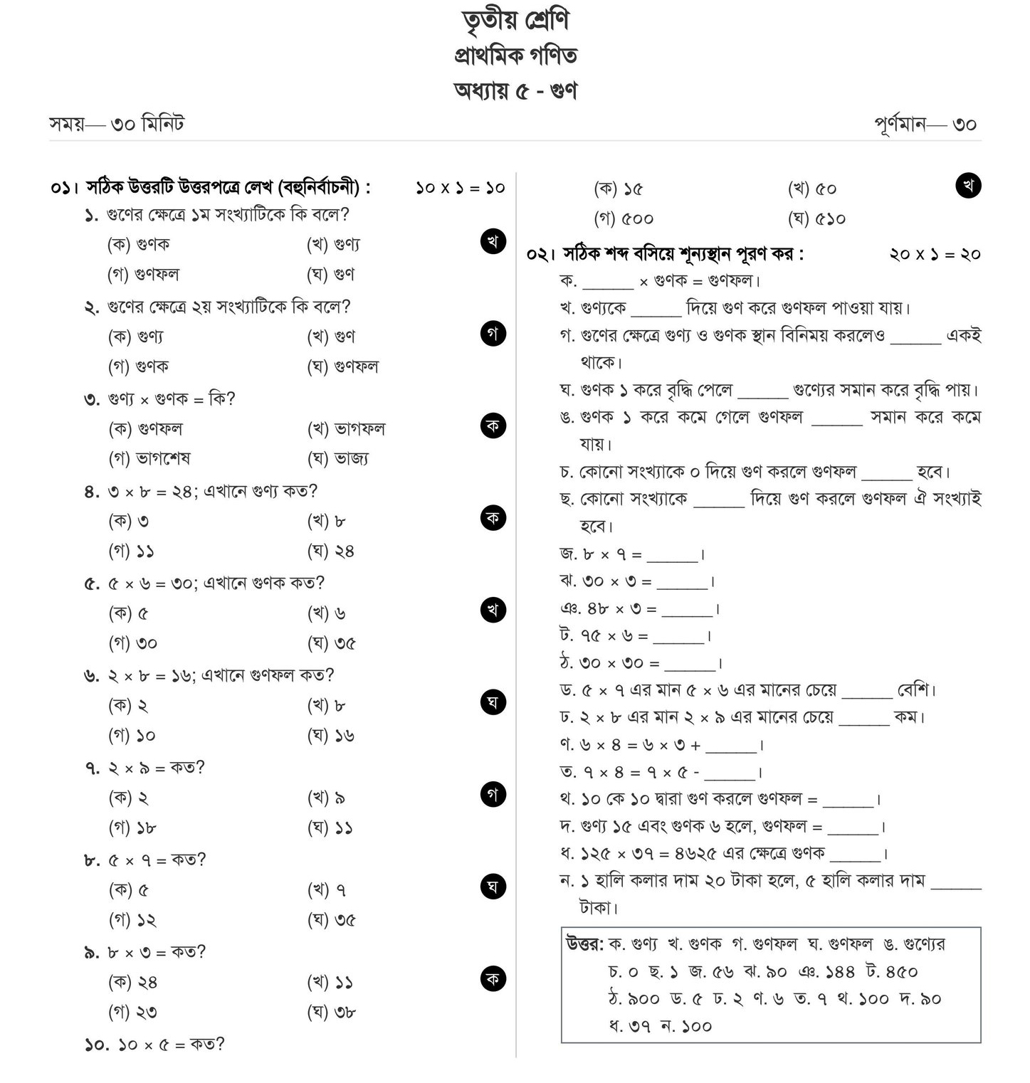 প্রশ্নোত্তরগুলো শুধু তৃতীয়, চতুর্থ ও পঞ্চম শ্রেণির শিক্ষার্থীদের জন্য