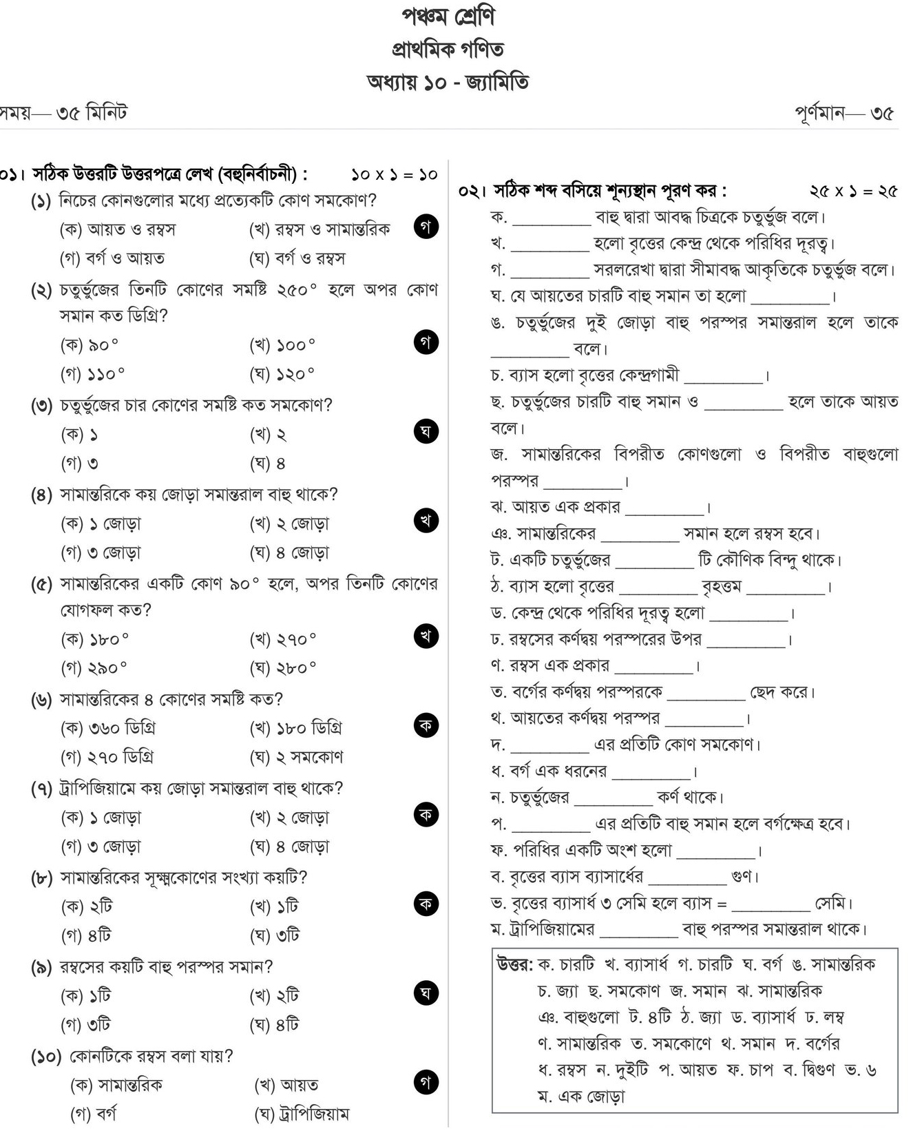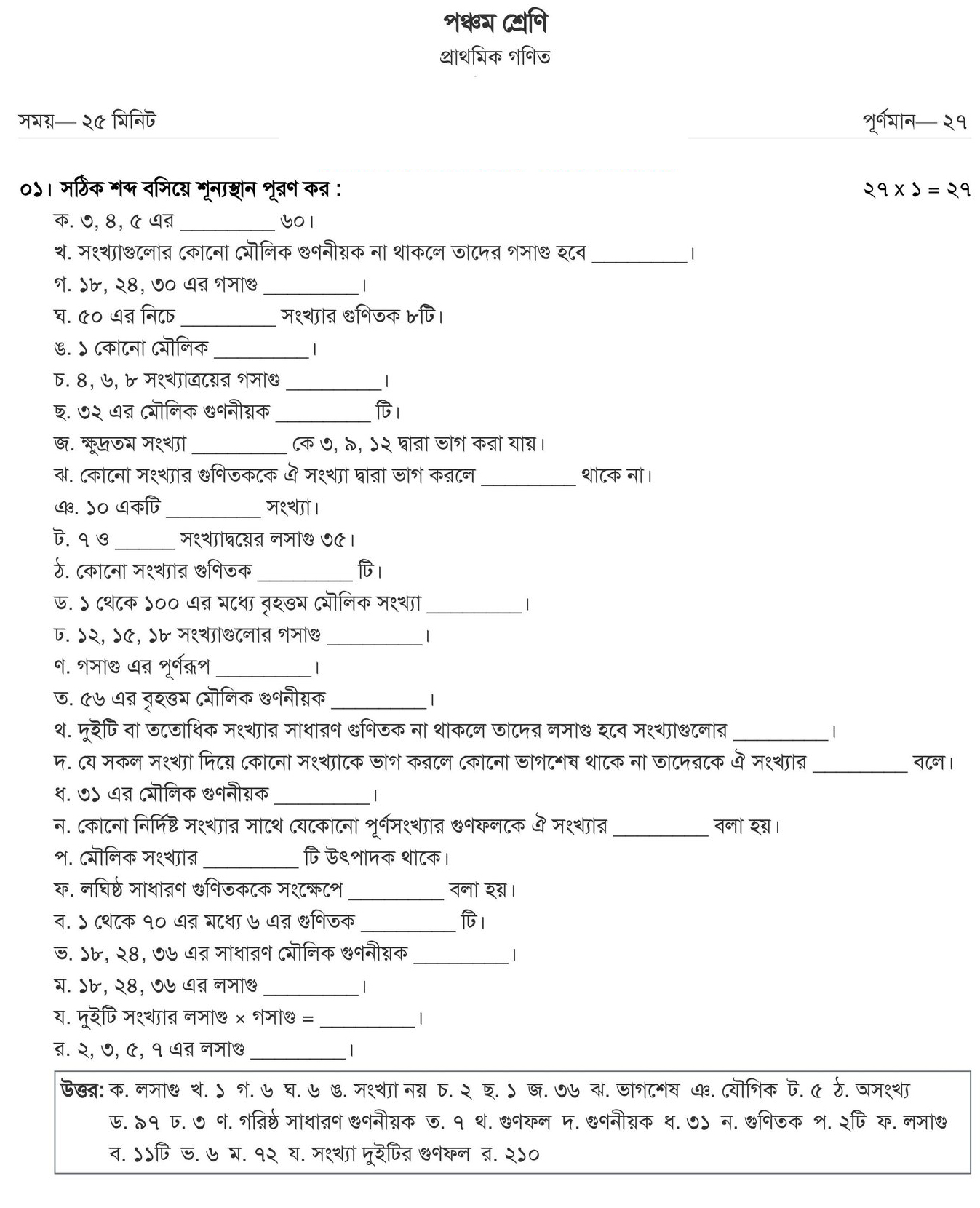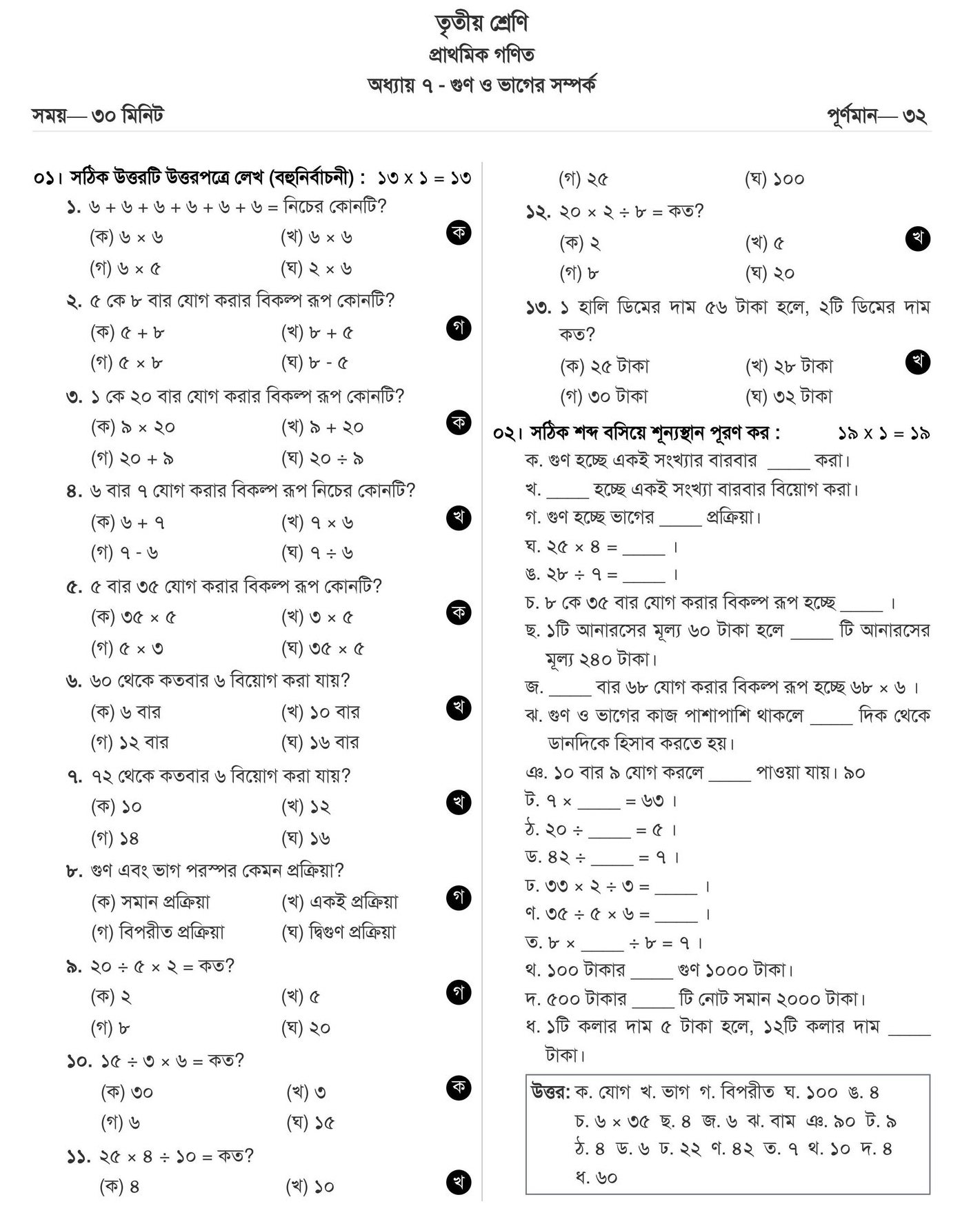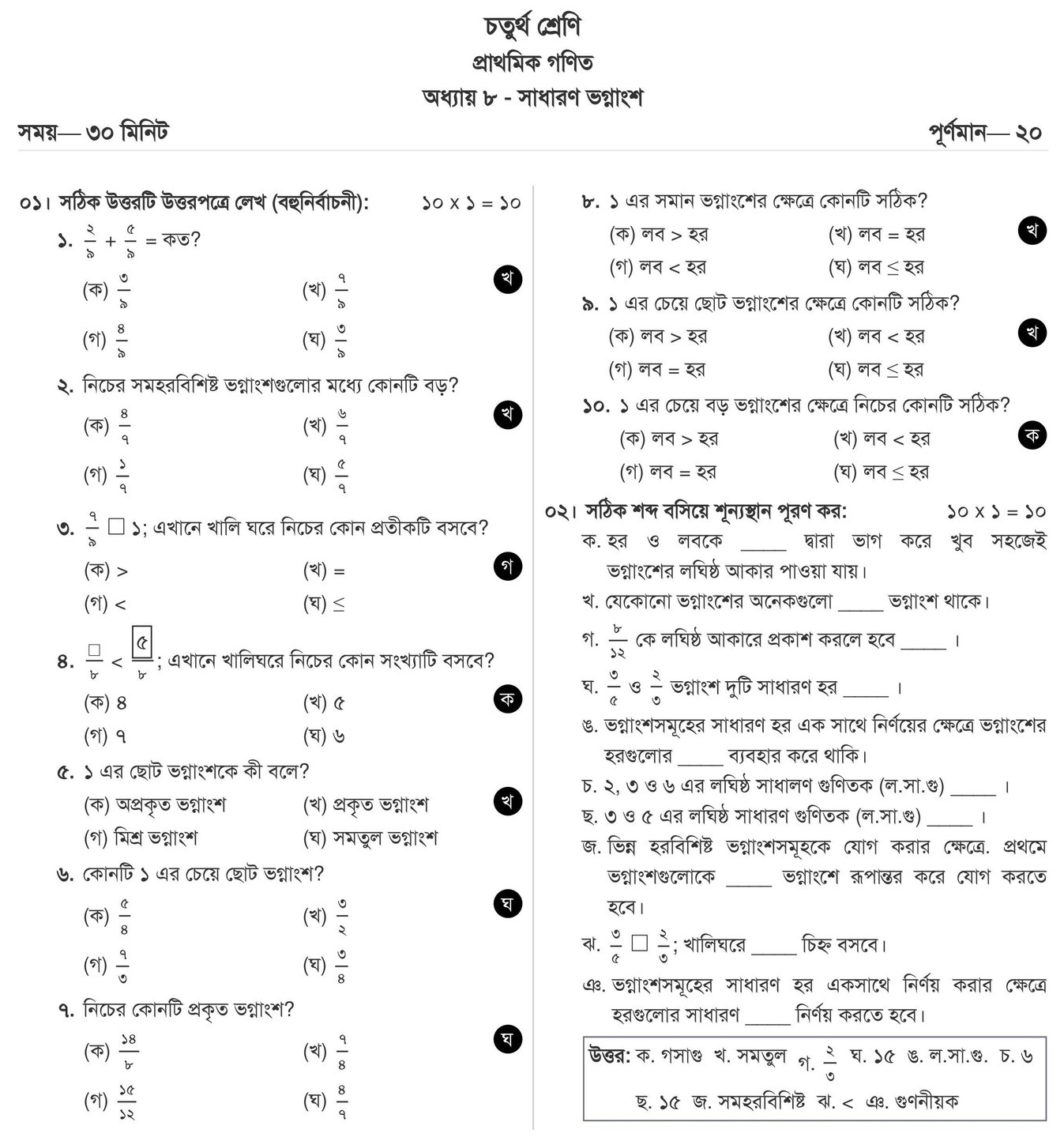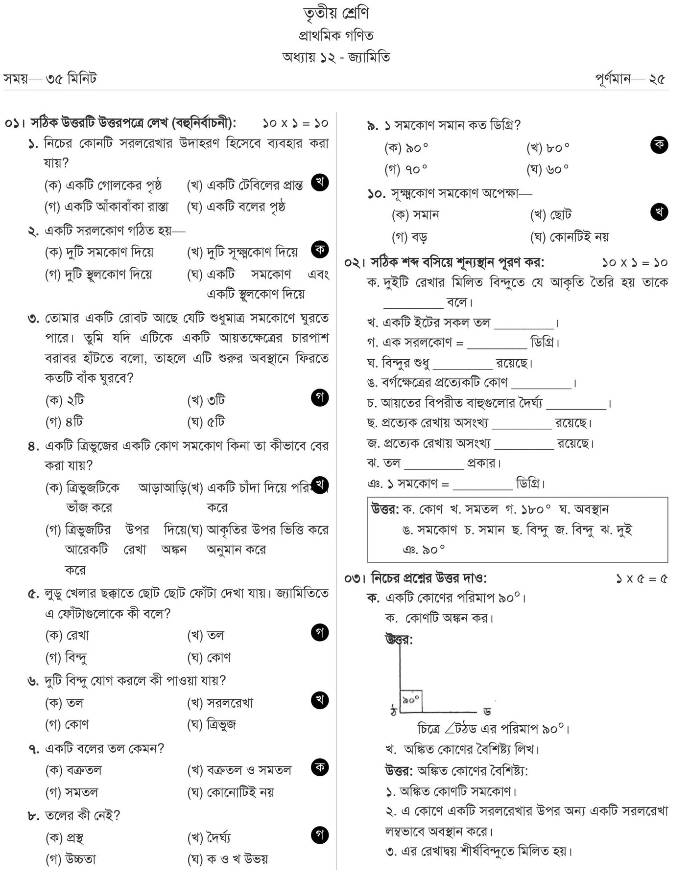 প্রশ্নোত্তরগুলো শুধু তৃতীয়, চতুর্থ ও পঞ্চম শ্রেণির শিক্ষার্থীদের জন্য