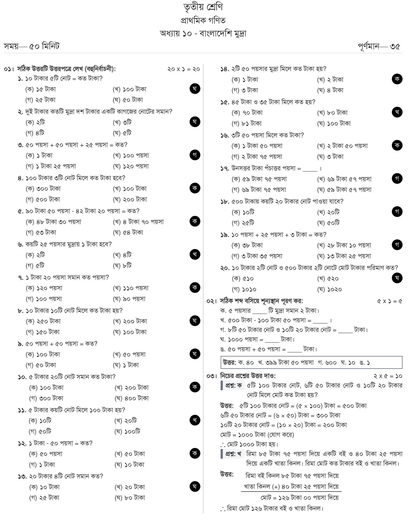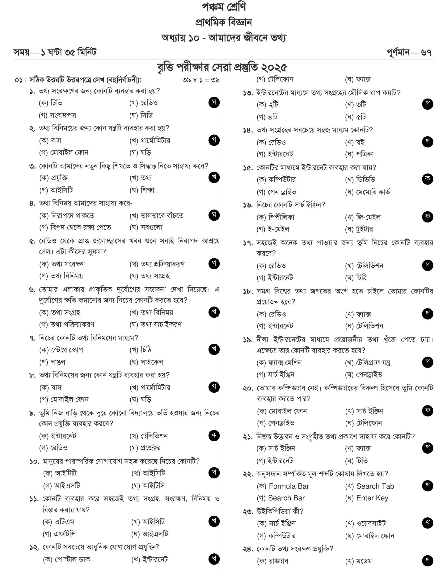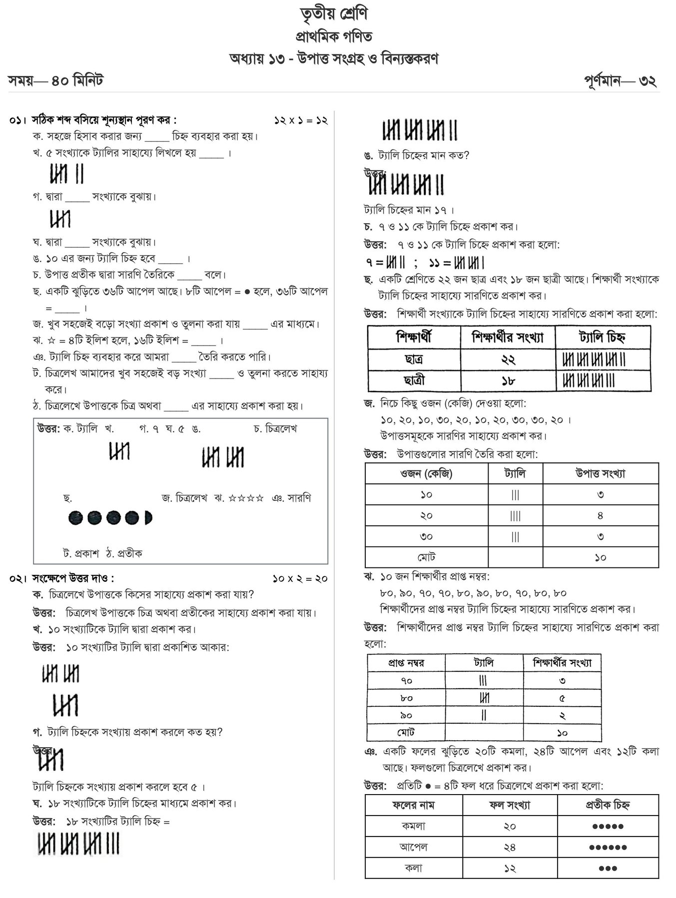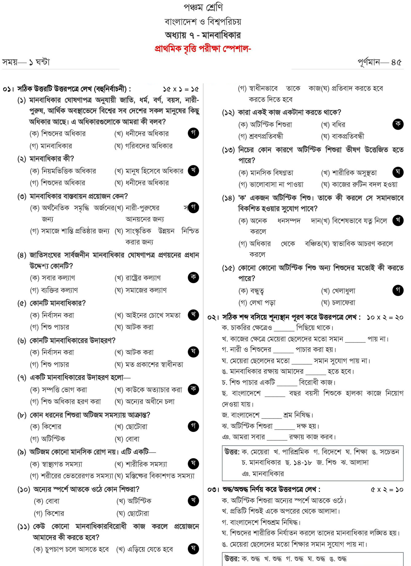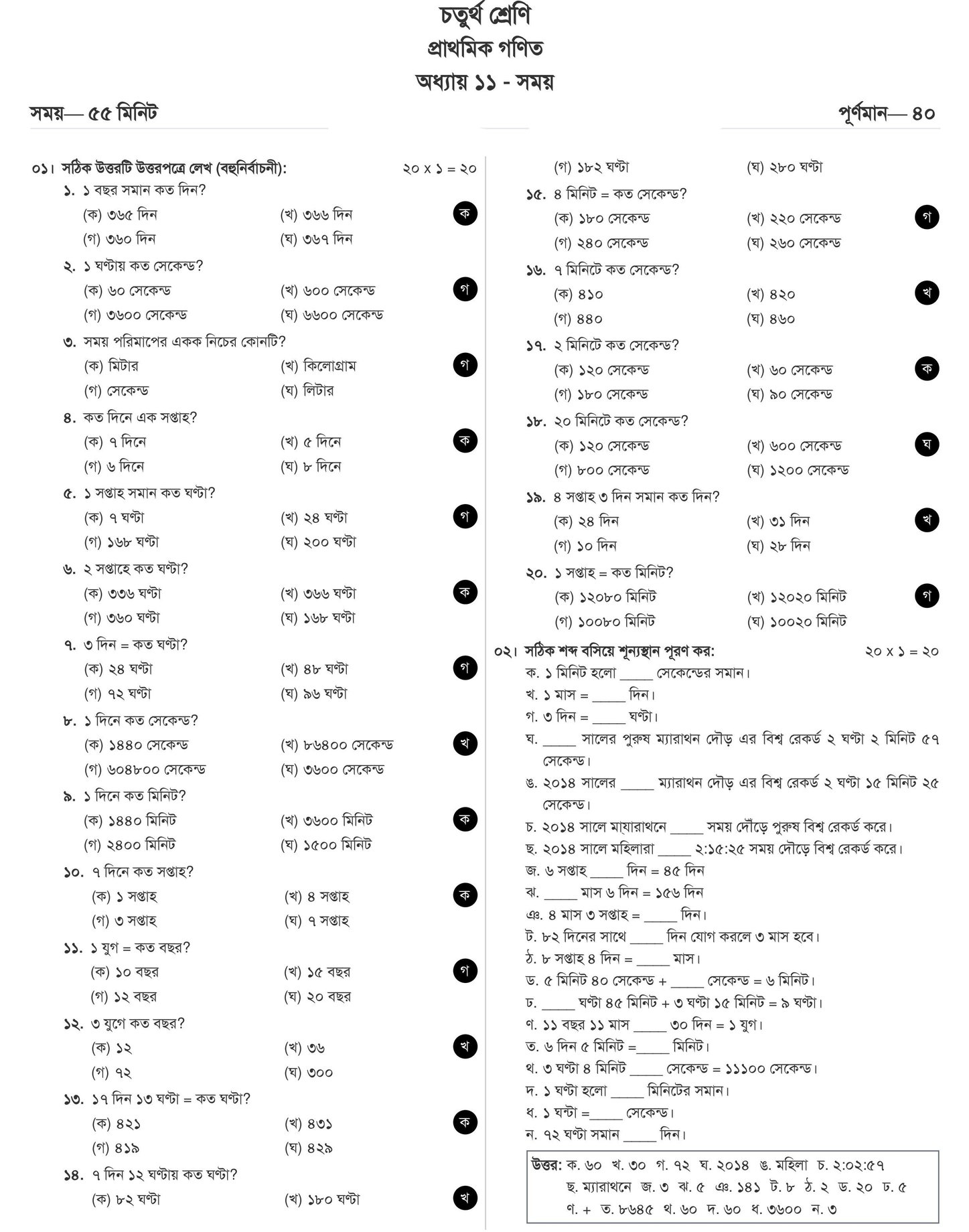প্রশ্নোত্তরগুলো শুধু তৃতীয়, চতুর্থ ও পঞ্চম শ্রেণির শিক্ষার্থীদের জন্য