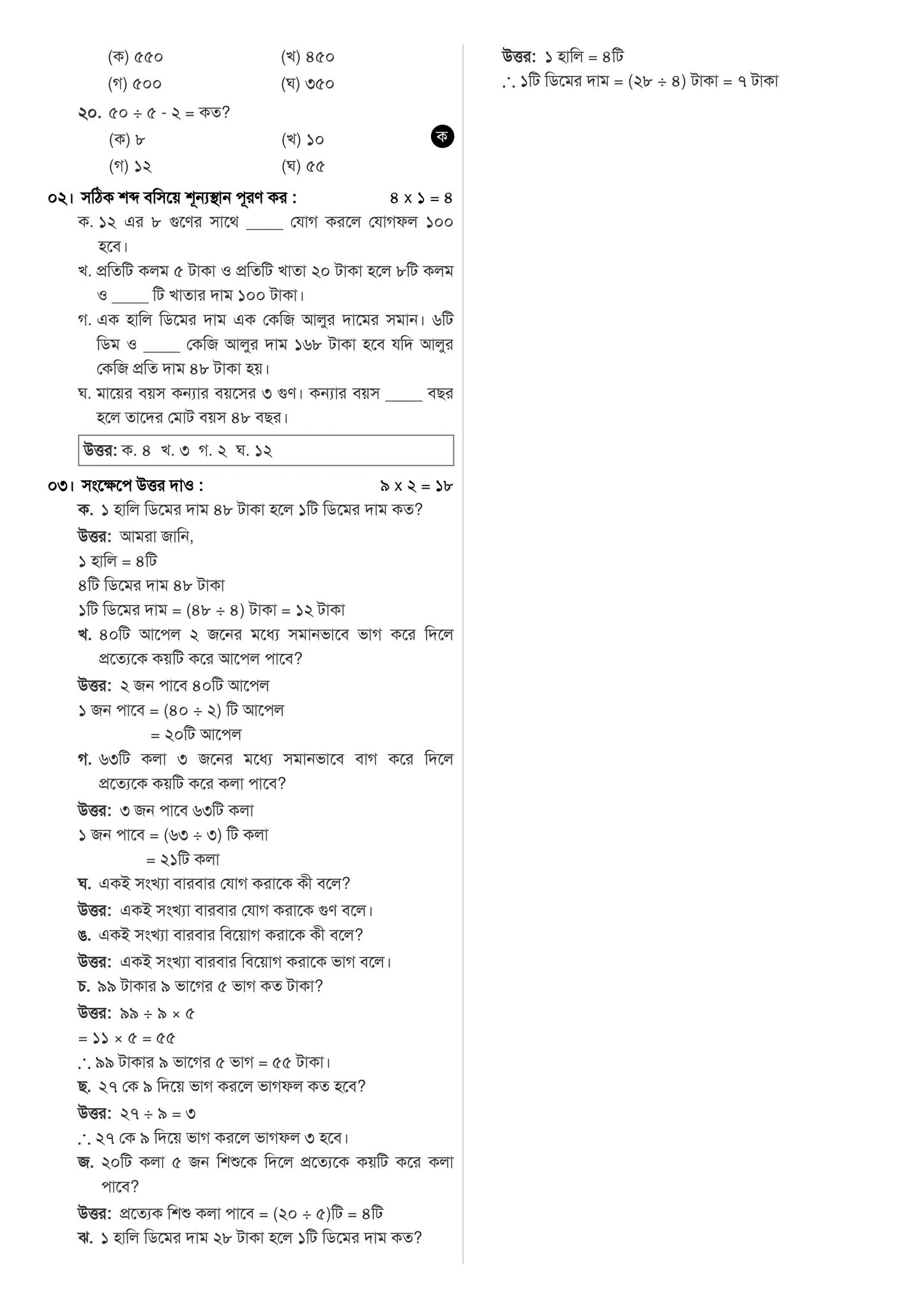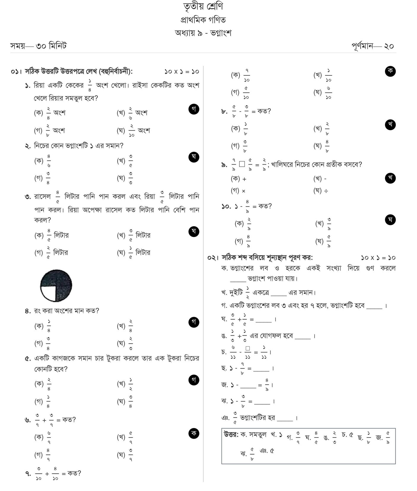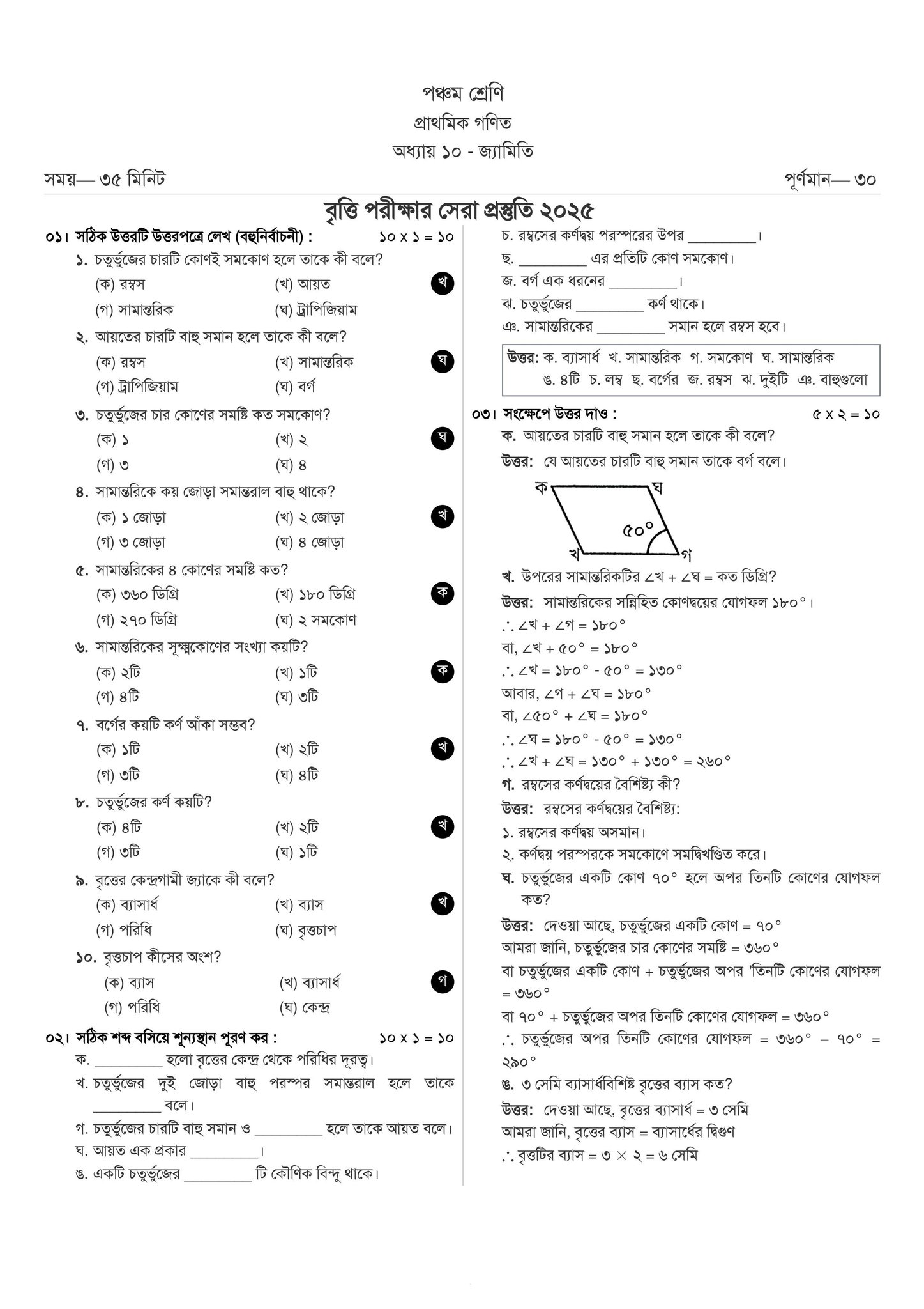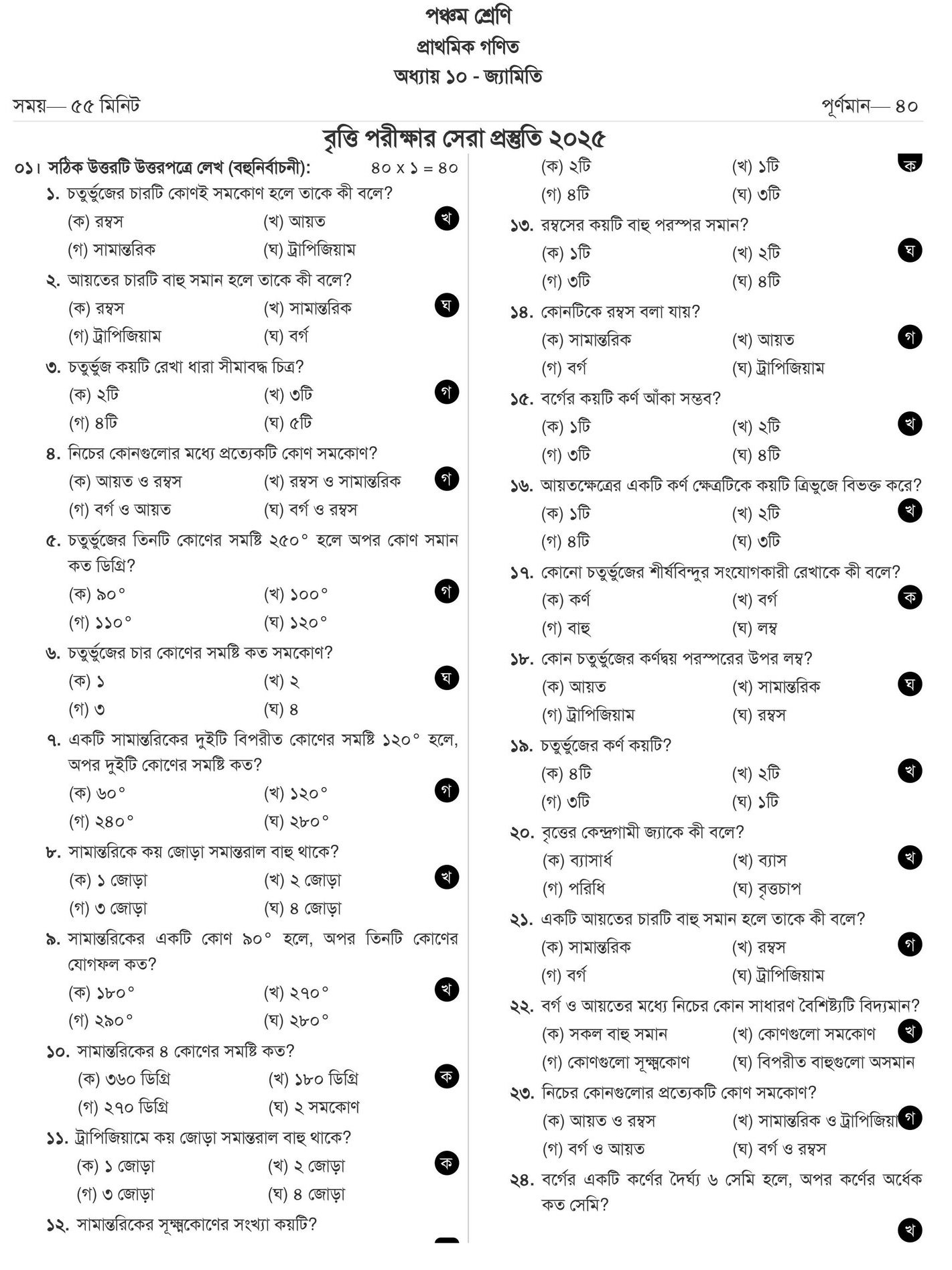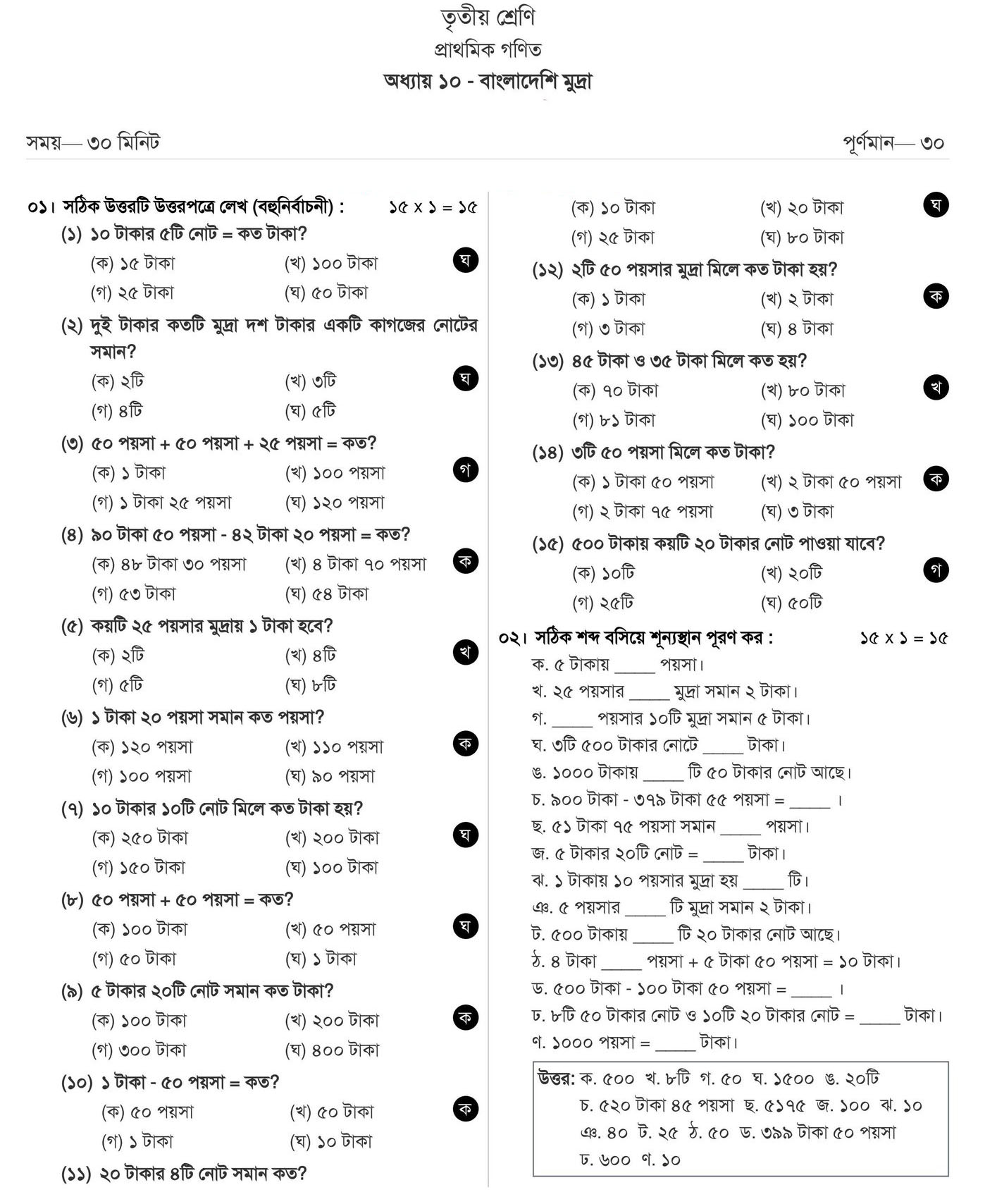 প্রশ্নোত্তরগুলো শুধু তৃতীয়, চতুর্থ ও পঞ্চম শ্রেণির শিক্ষার্থীদের জন্য