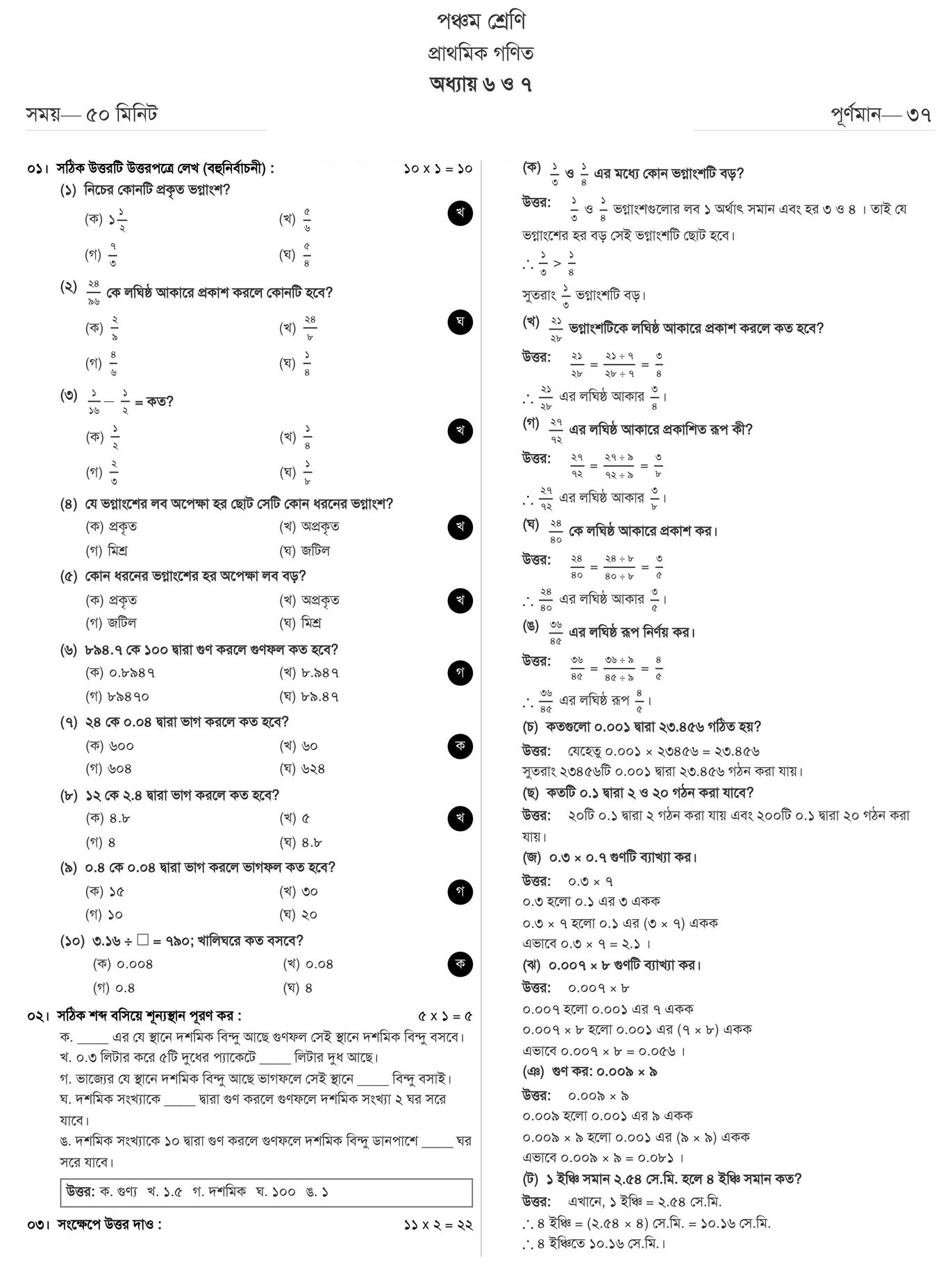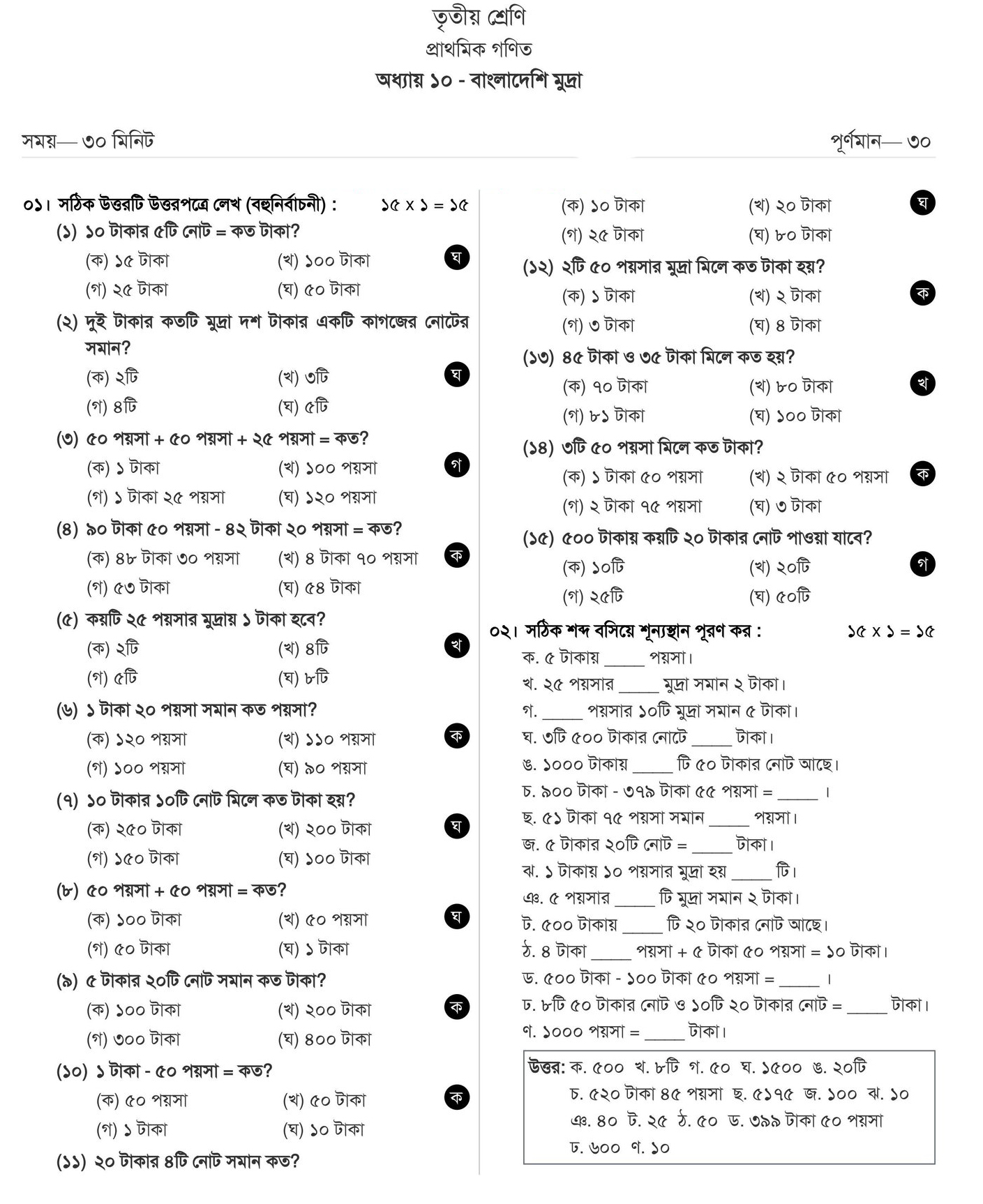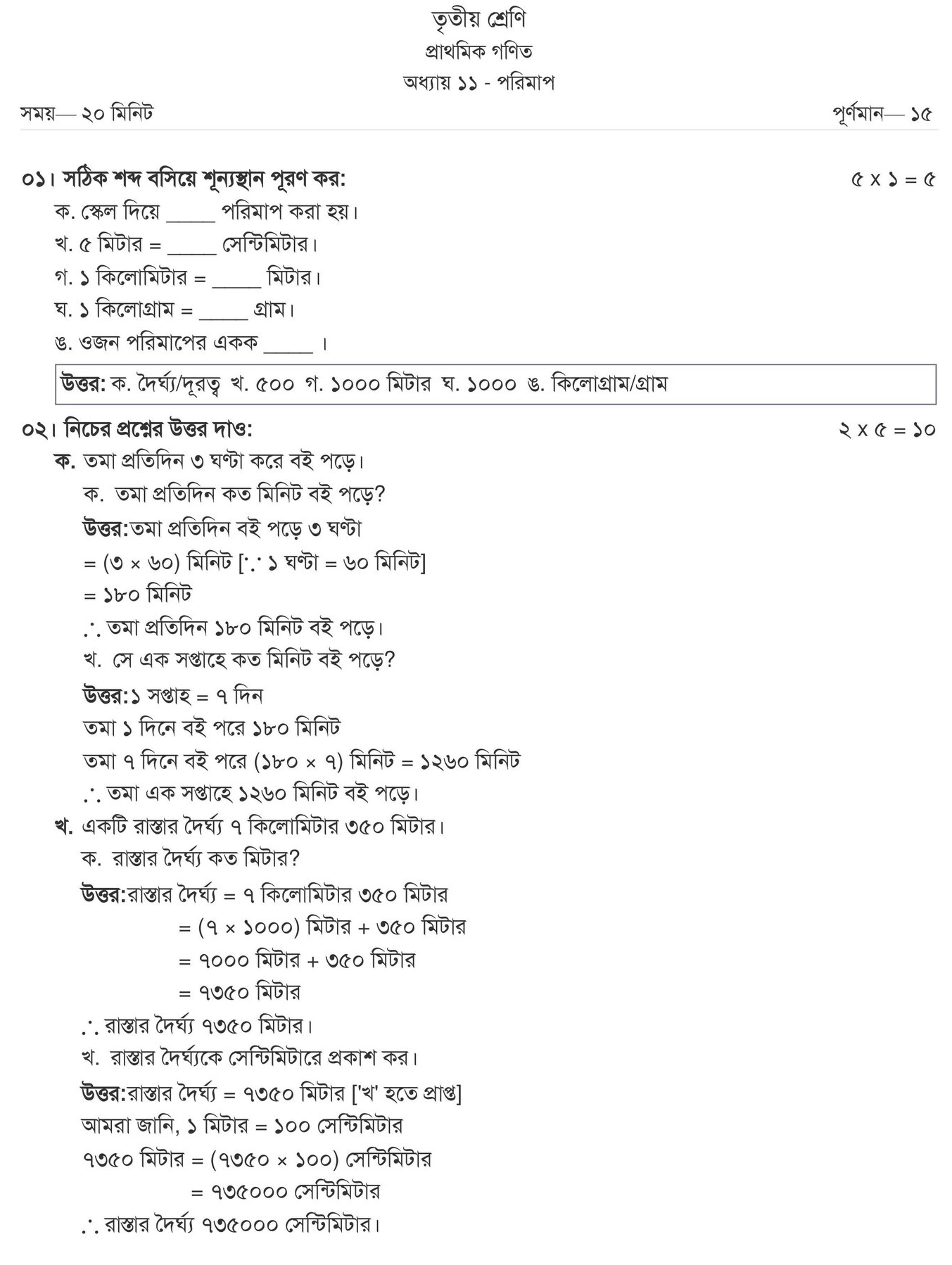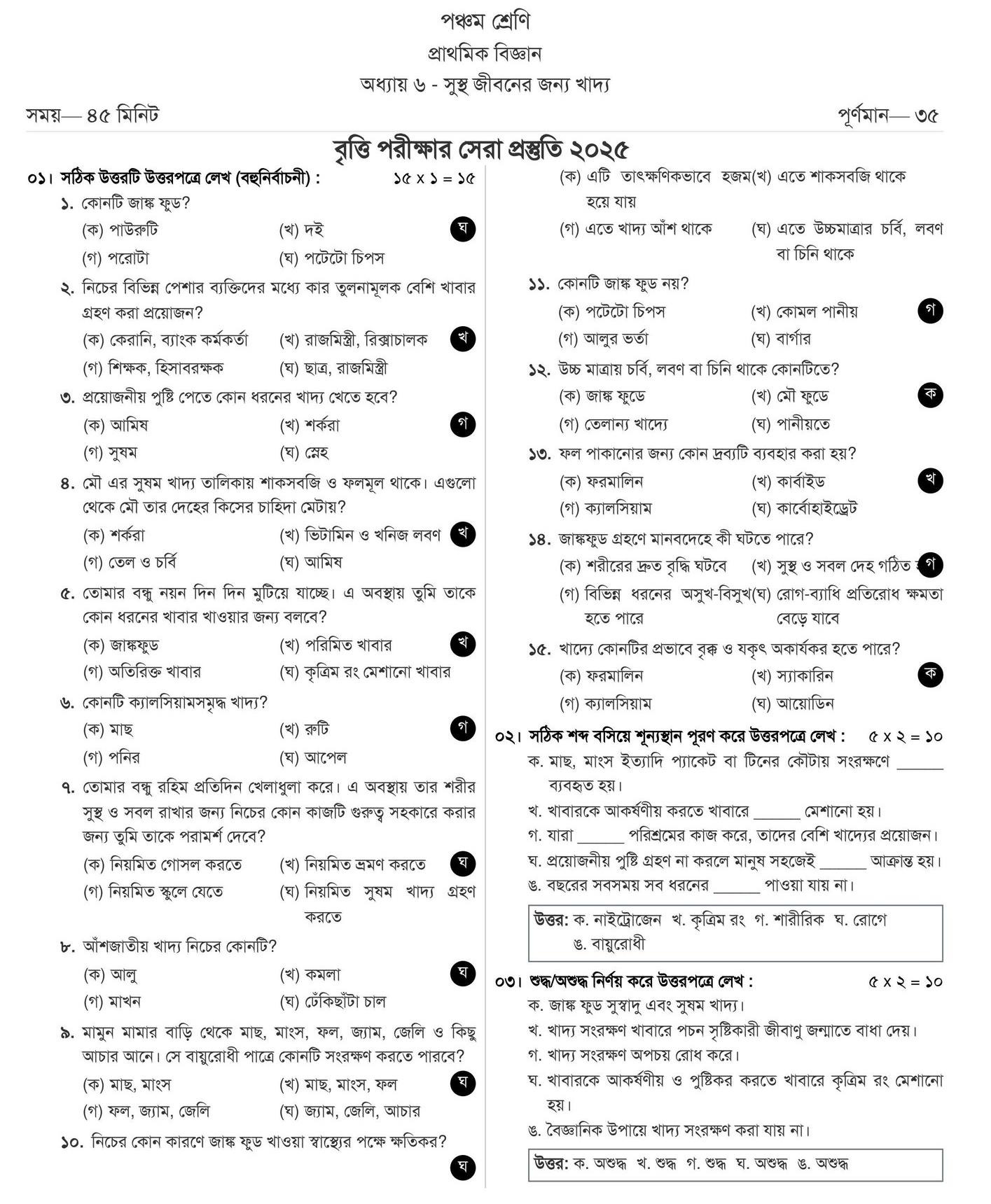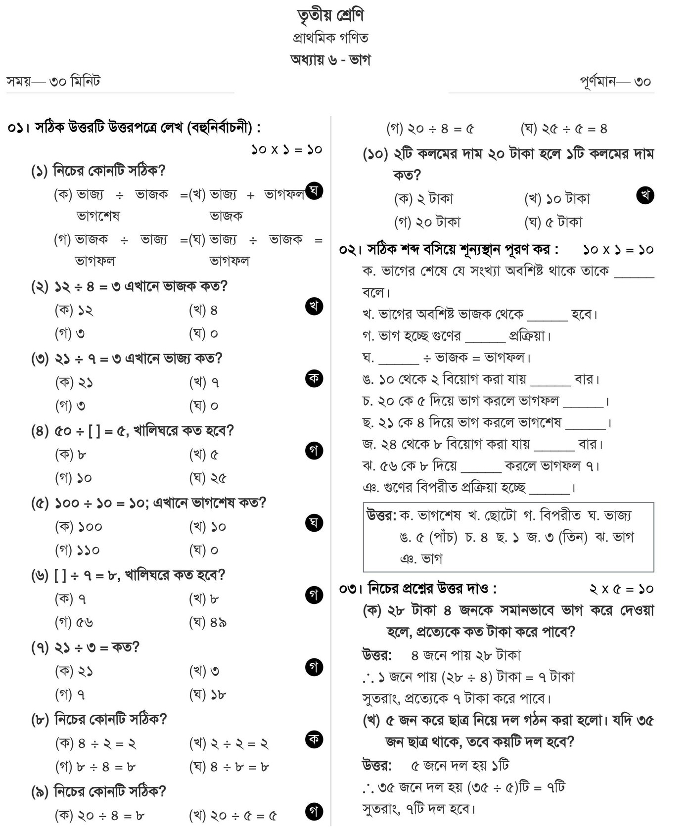 প্রশ্নোত্তরগুলো শুধু তৃতীয়, চতুর্থ ও পঞ্চম শ্রেণির শিক্ষার্থীদের জন্য