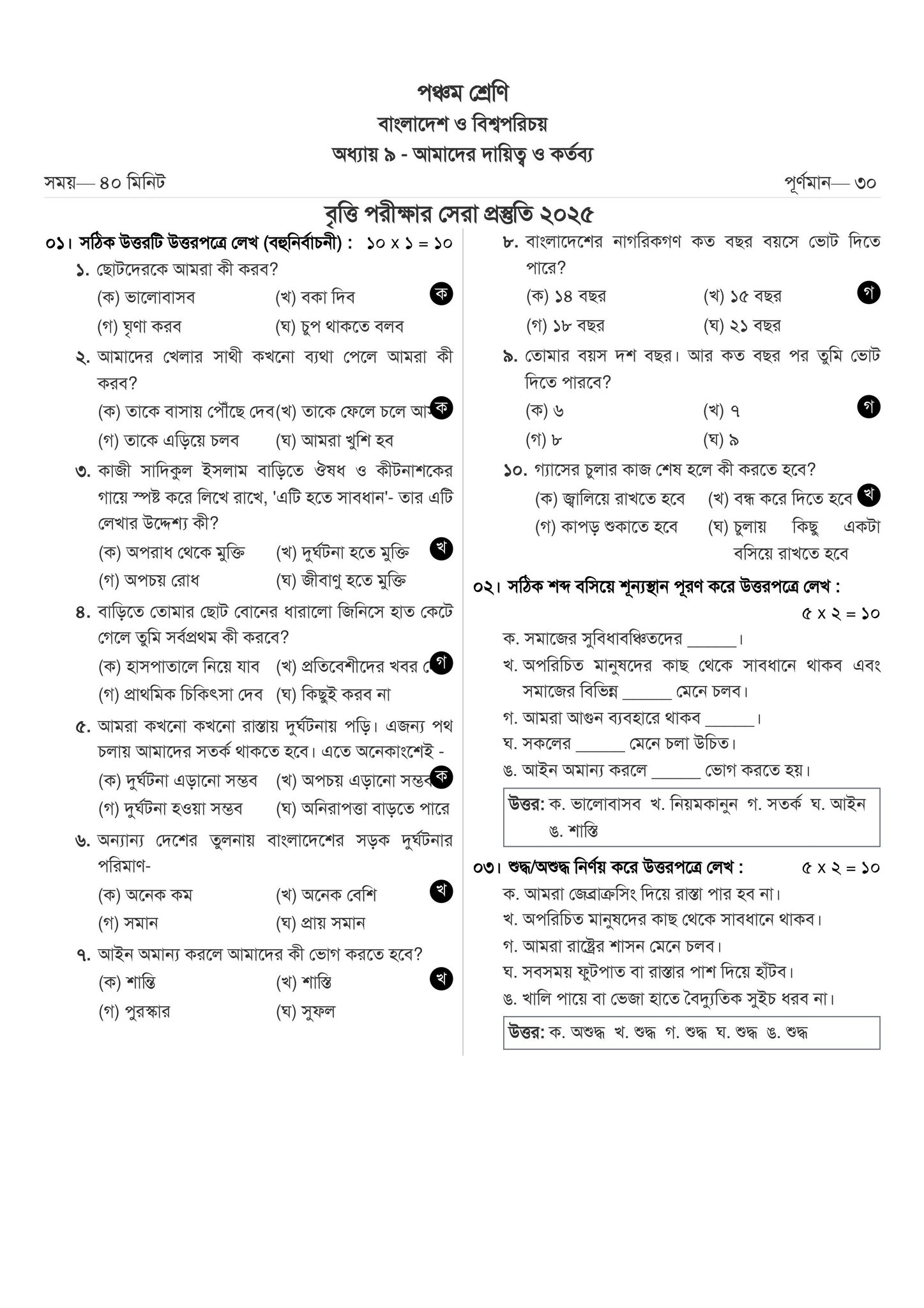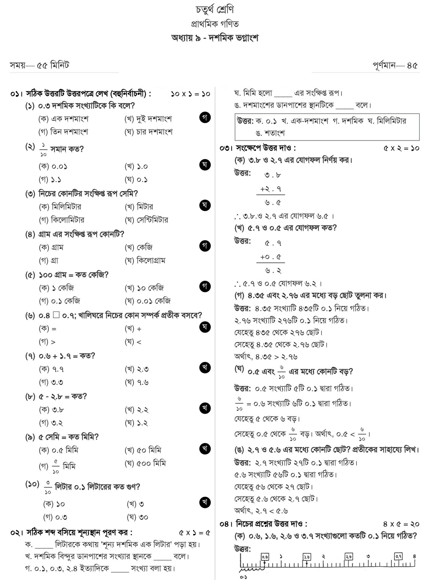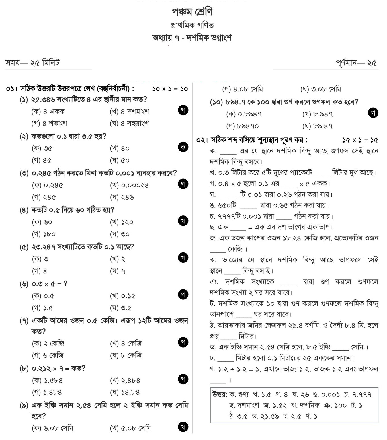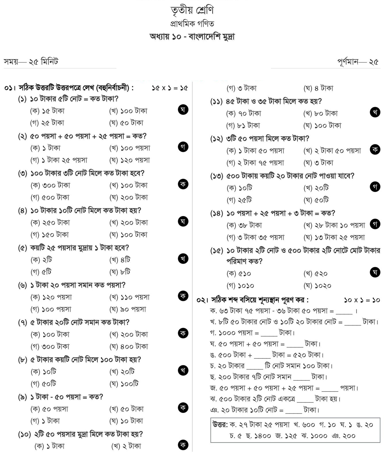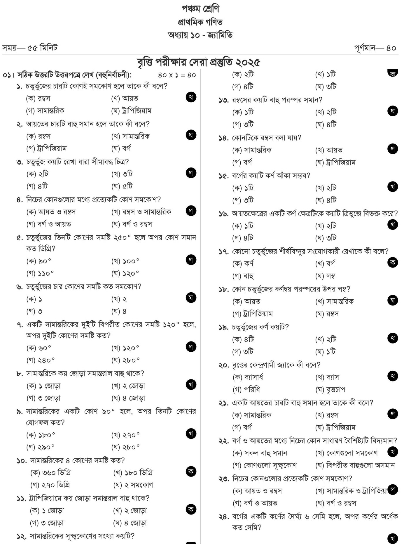 প্রশ্নোত্তরগুলো শুধু তৃতীয়, চতুর্থ ও পঞ্চম শ্রেণির শিক্ষার্থীদের জন্য