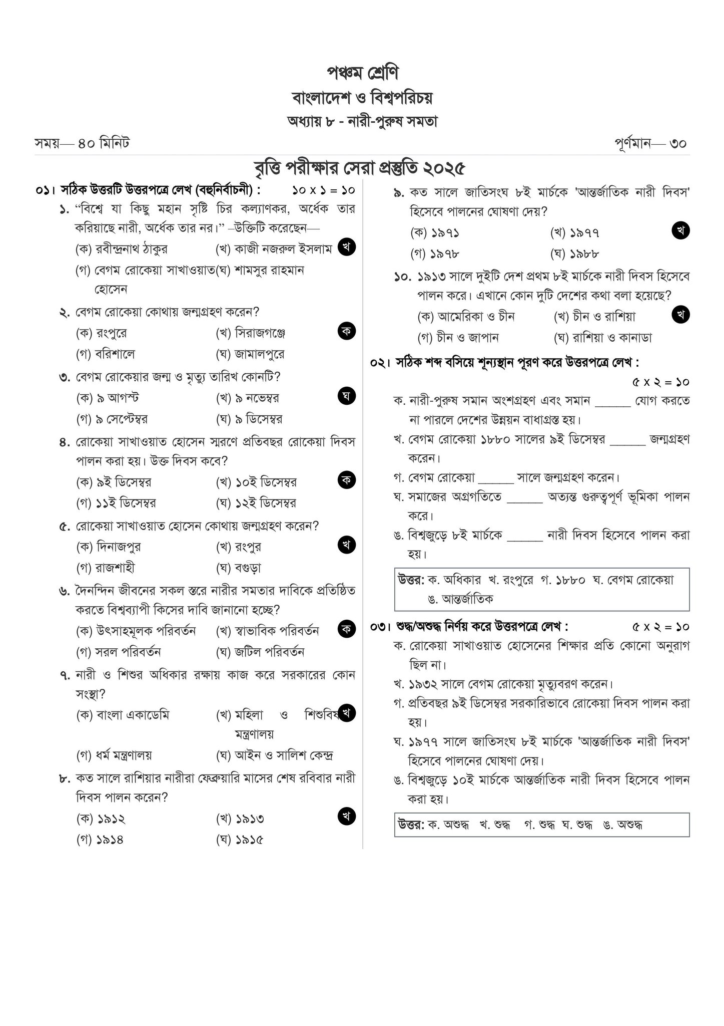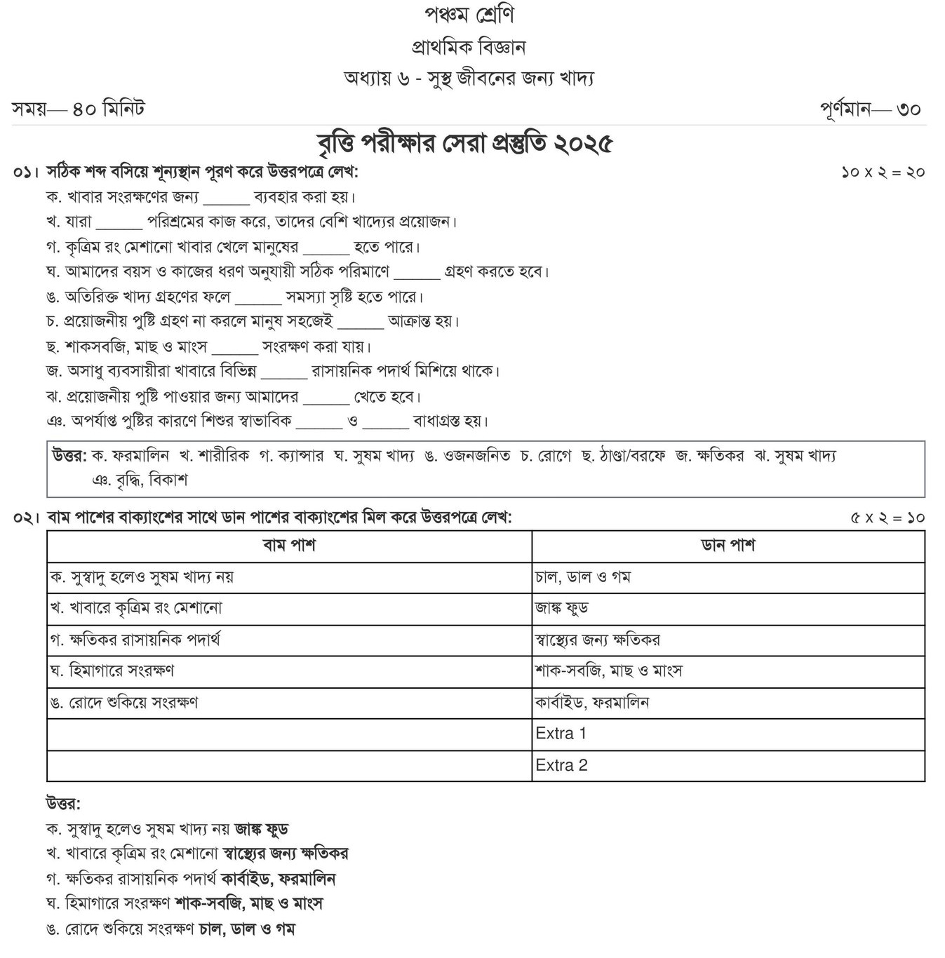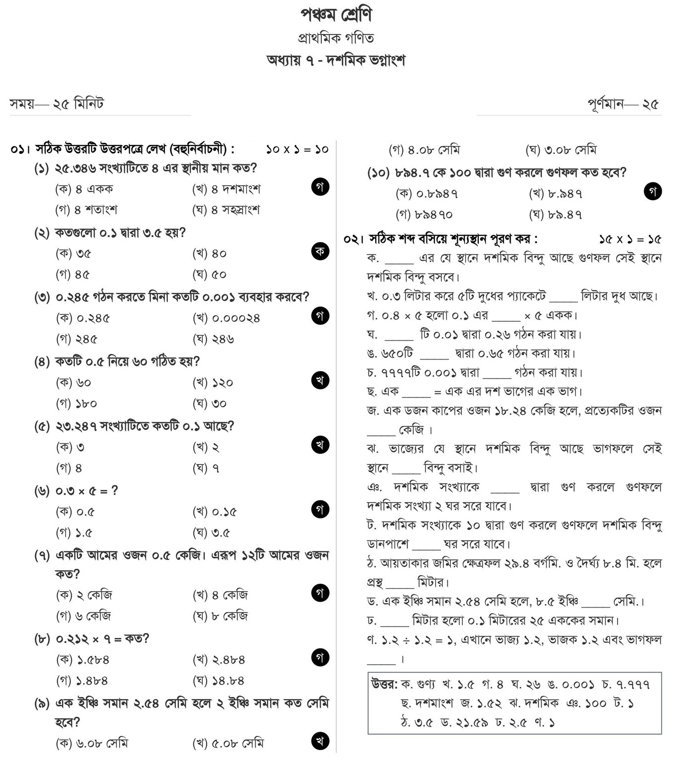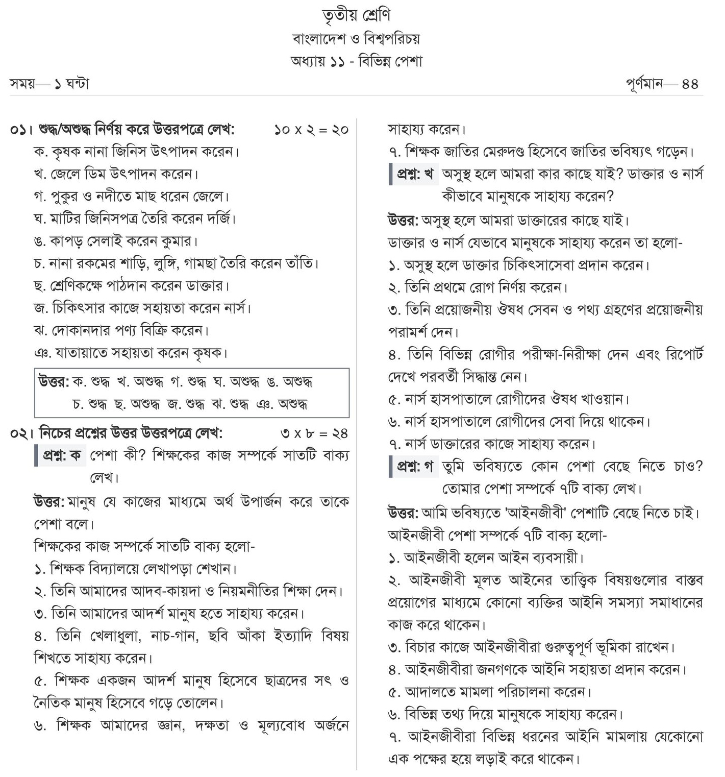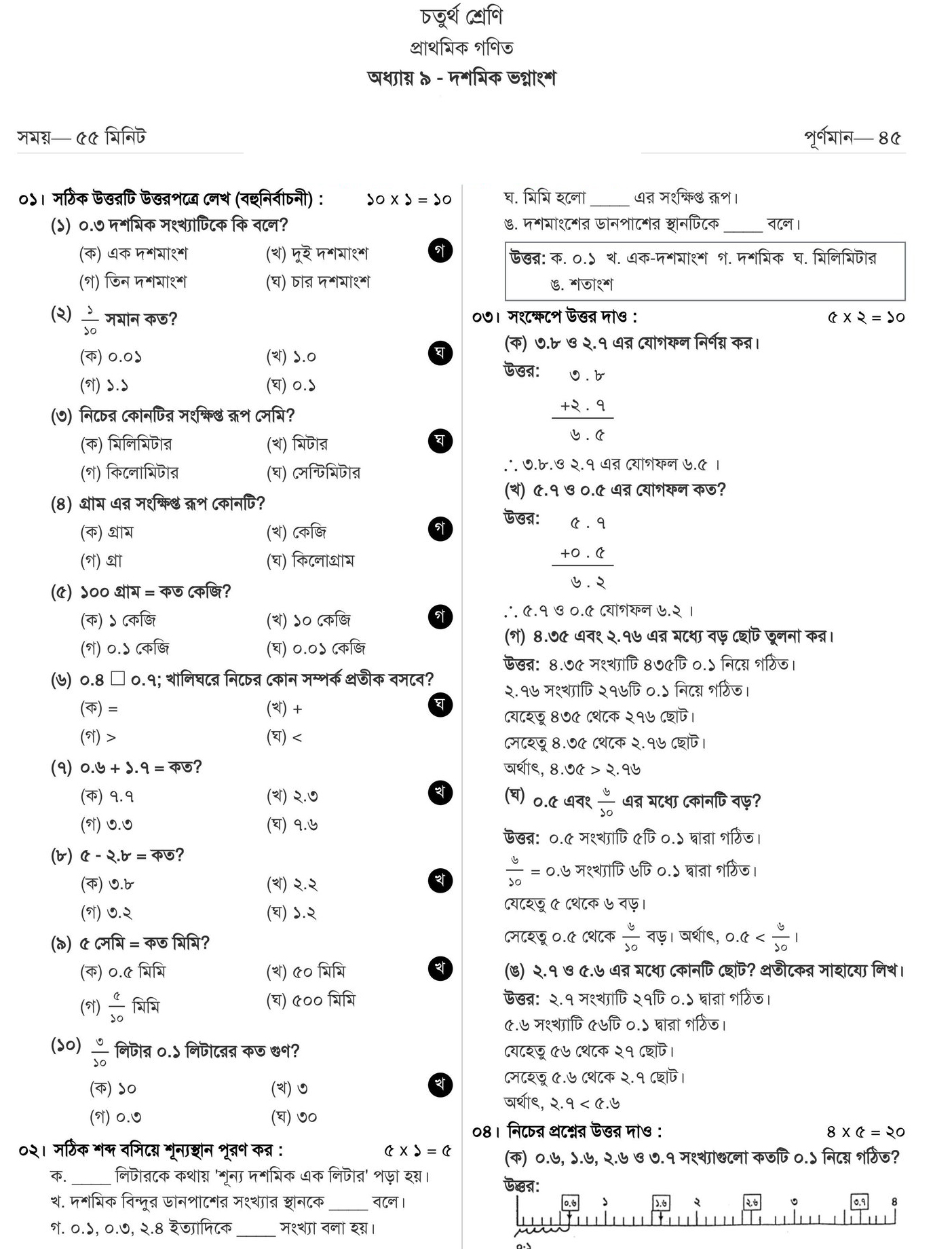 প্রশ্নোত্তরগুলো শুধু তৃতীয়, চতুর্থ ও পঞ্চম শ্রেণির শিক্ষার্থীদের জন্য