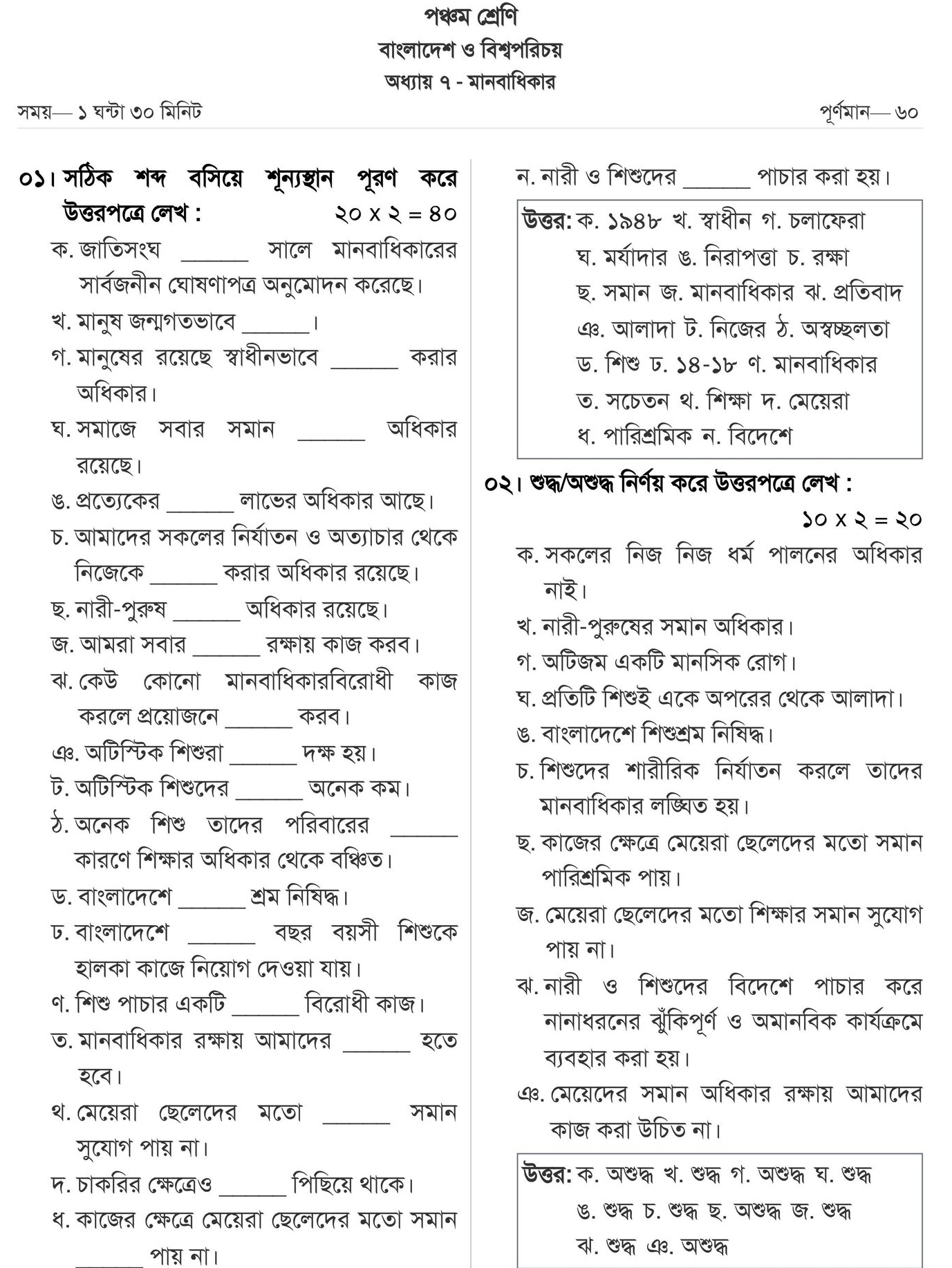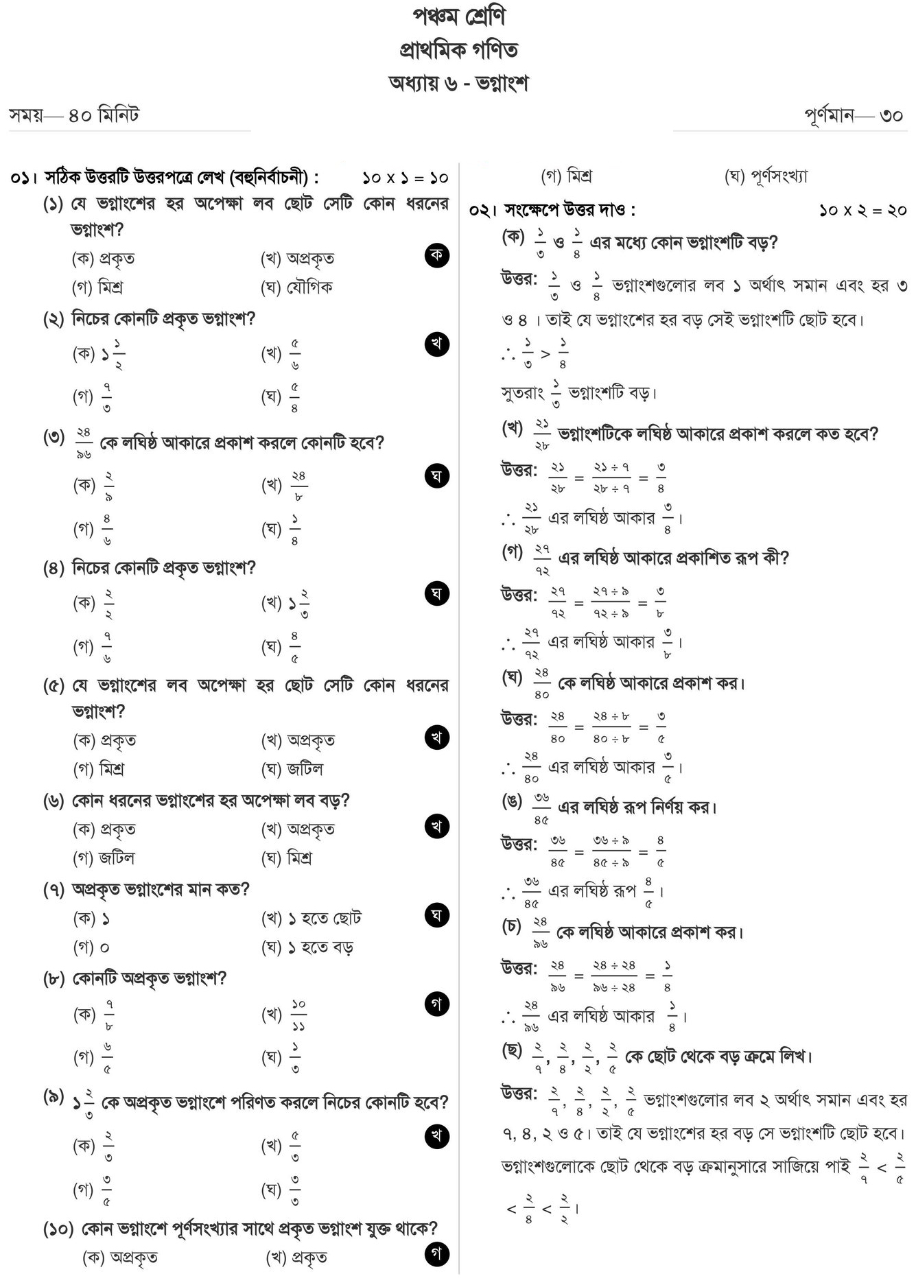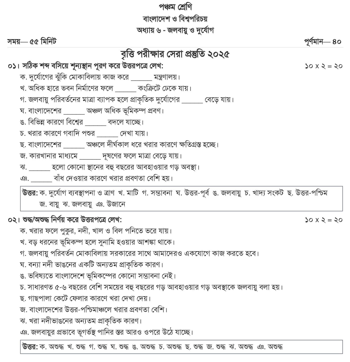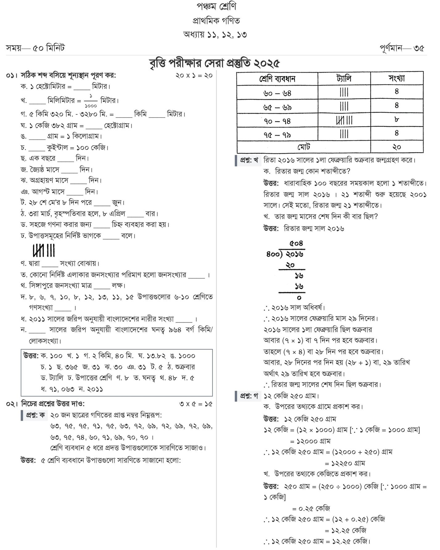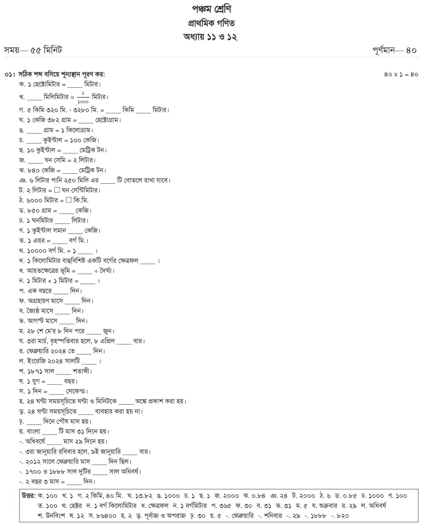 প্রশ্নোত্তরগুলো শুধু তৃতীয়, চতুর্থ ও পঞ্চম শ্রেণির শিক্ষার্থীদের জন্য
