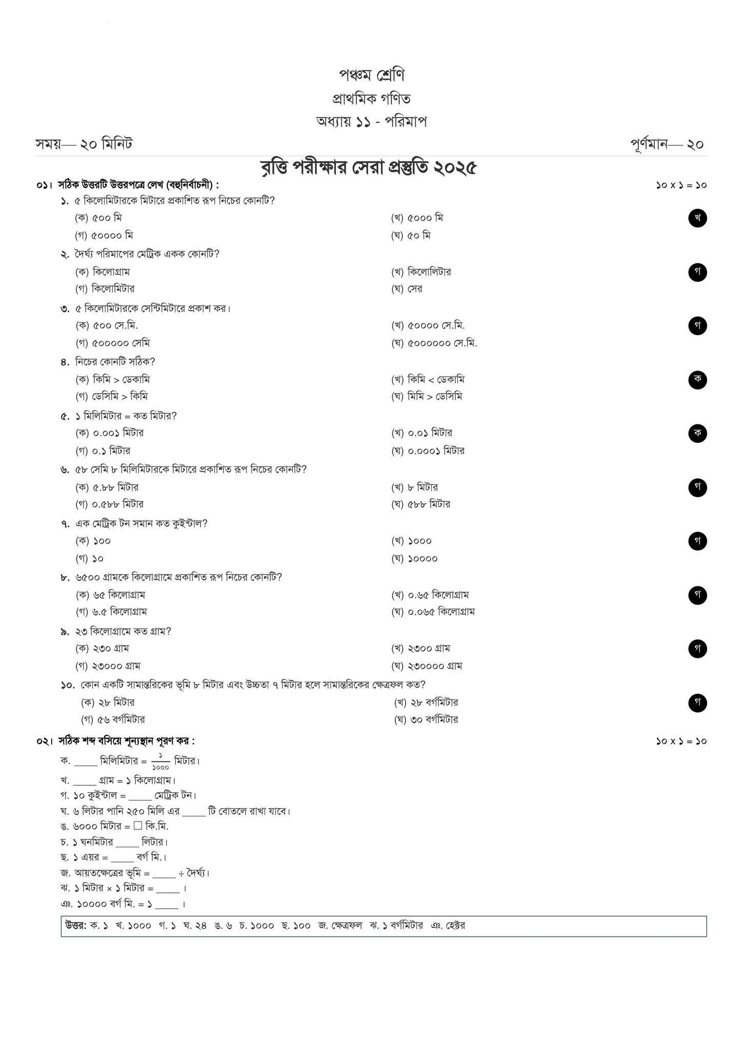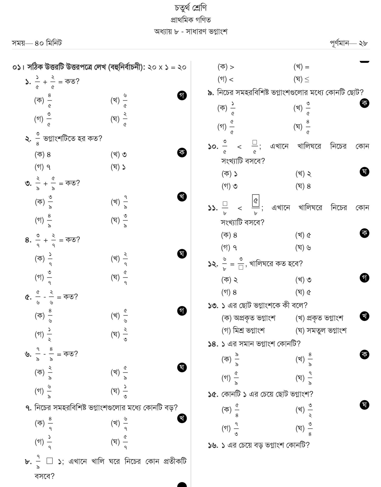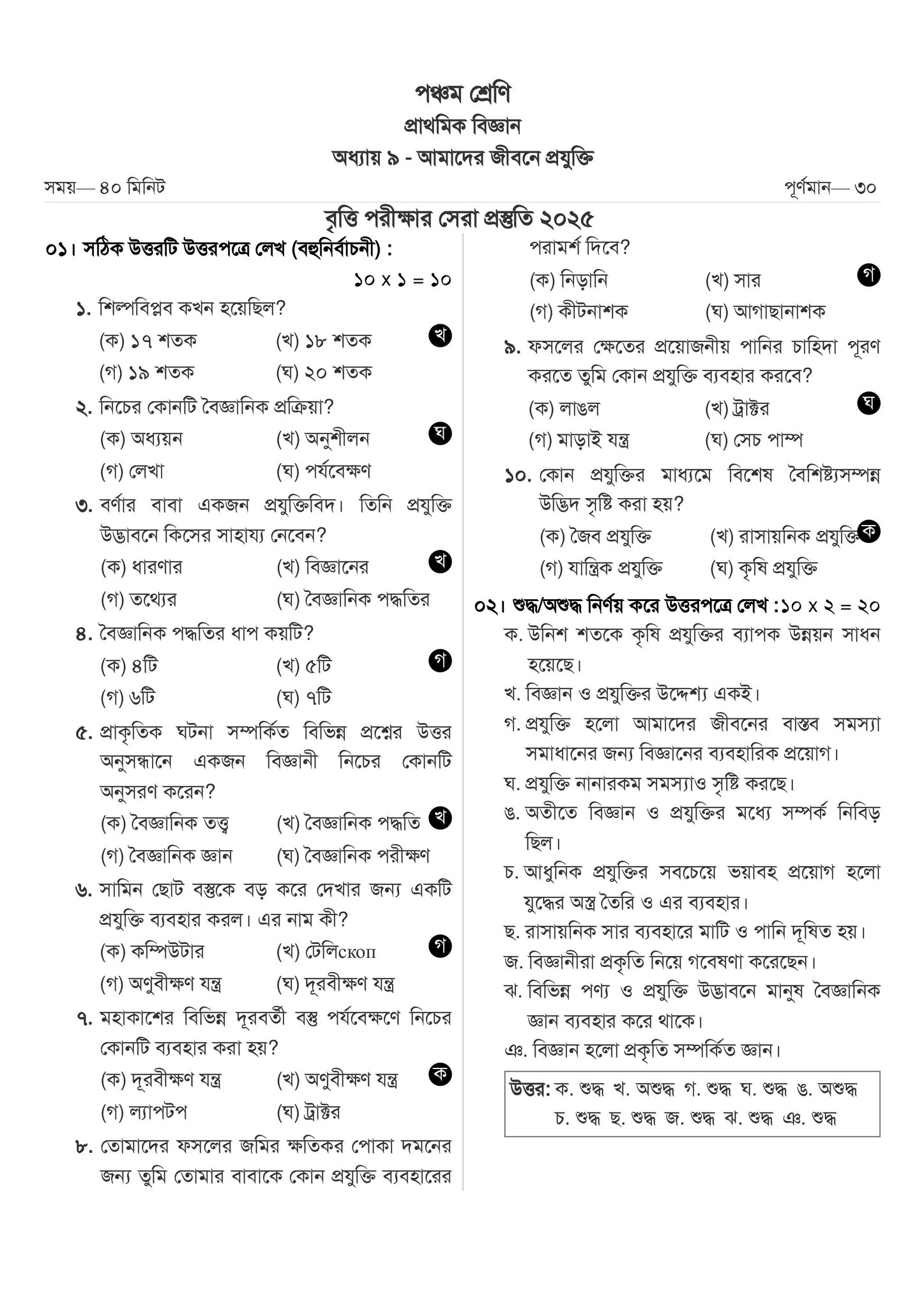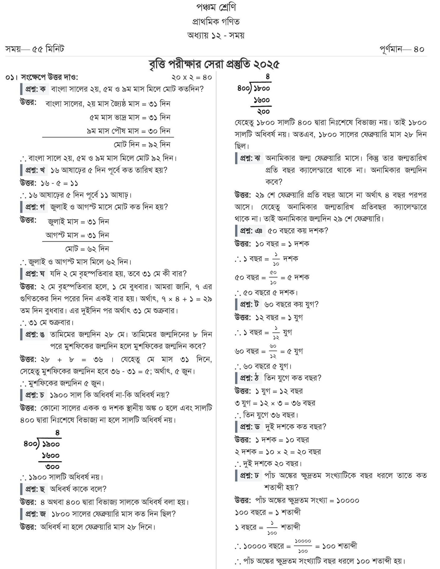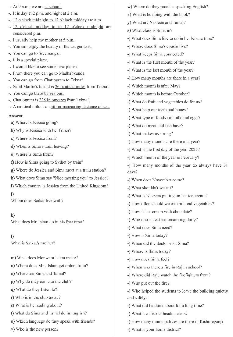 প্রশ্নোত্তরগুলো শুধু তৃতীয়, চতুর্থ ও পঞ্চম শ্রেণির শিক্ষার্থীদের জন্য