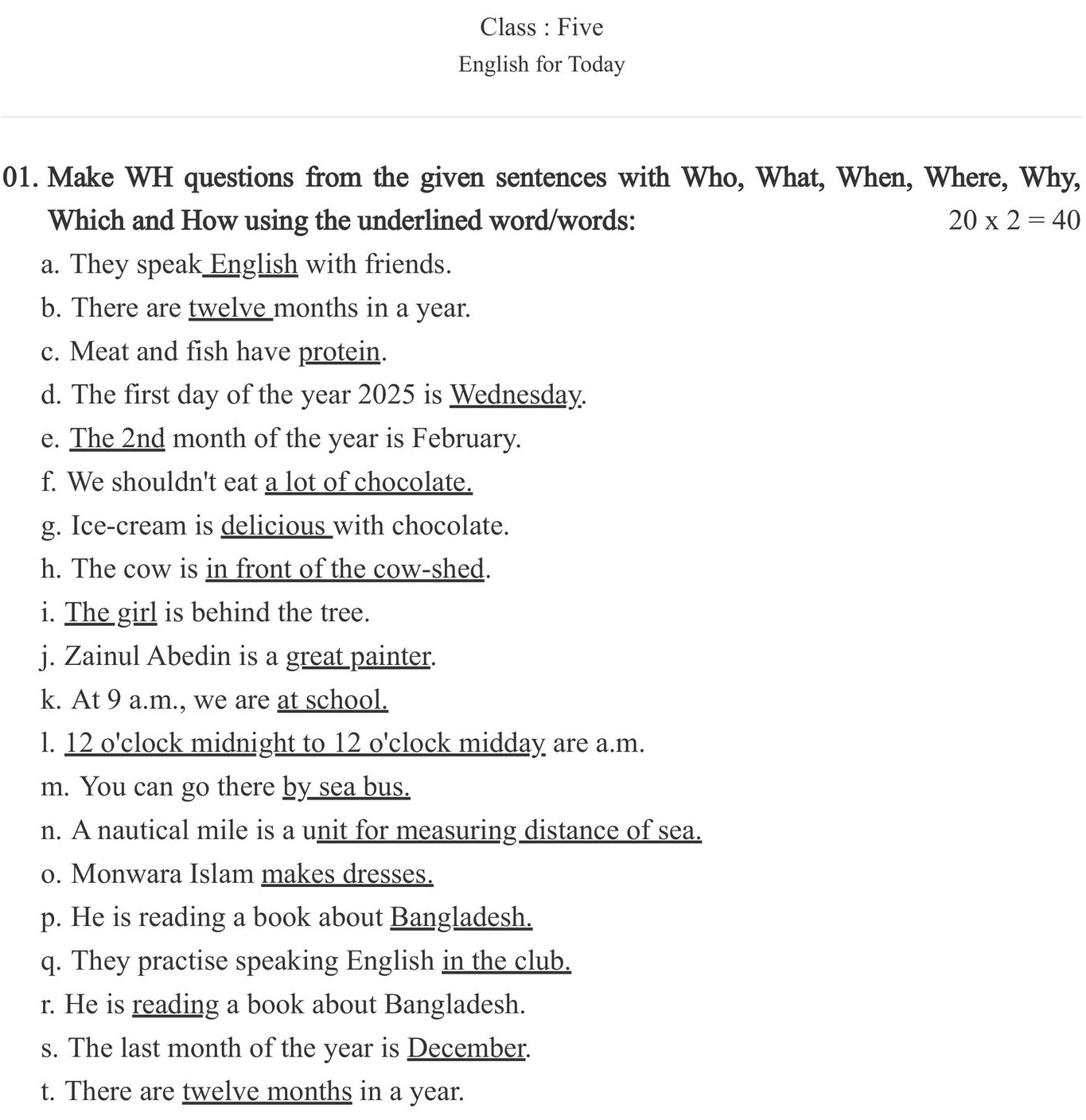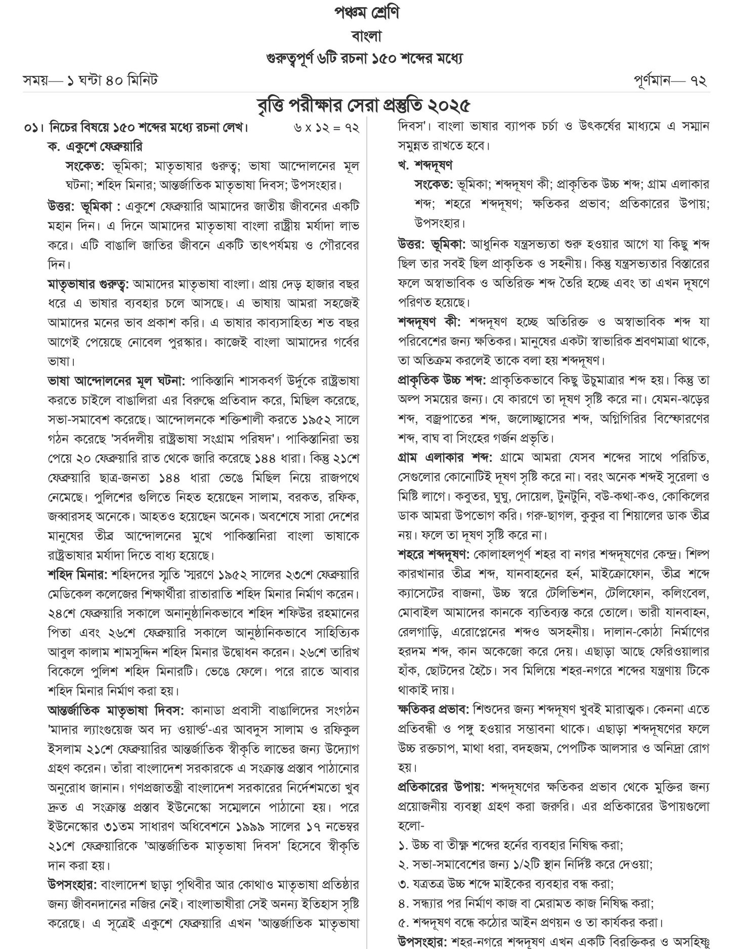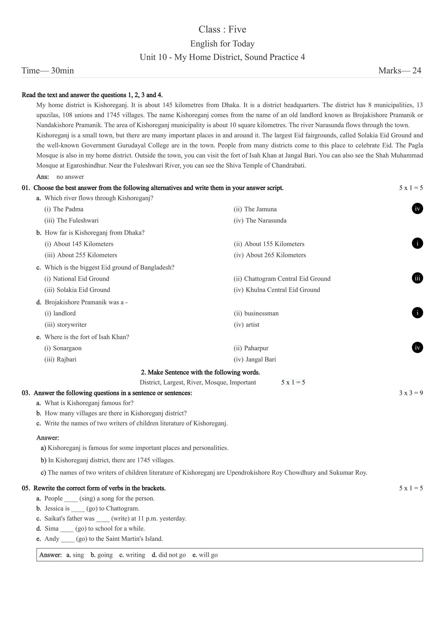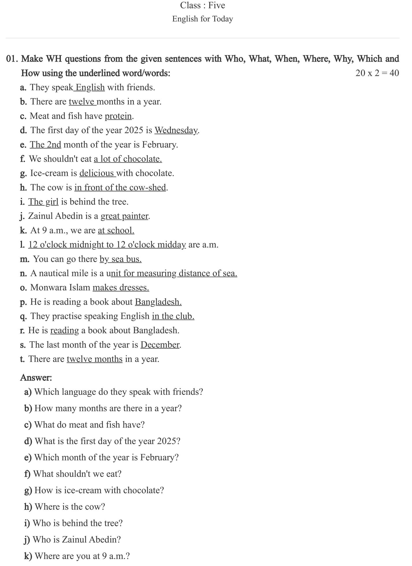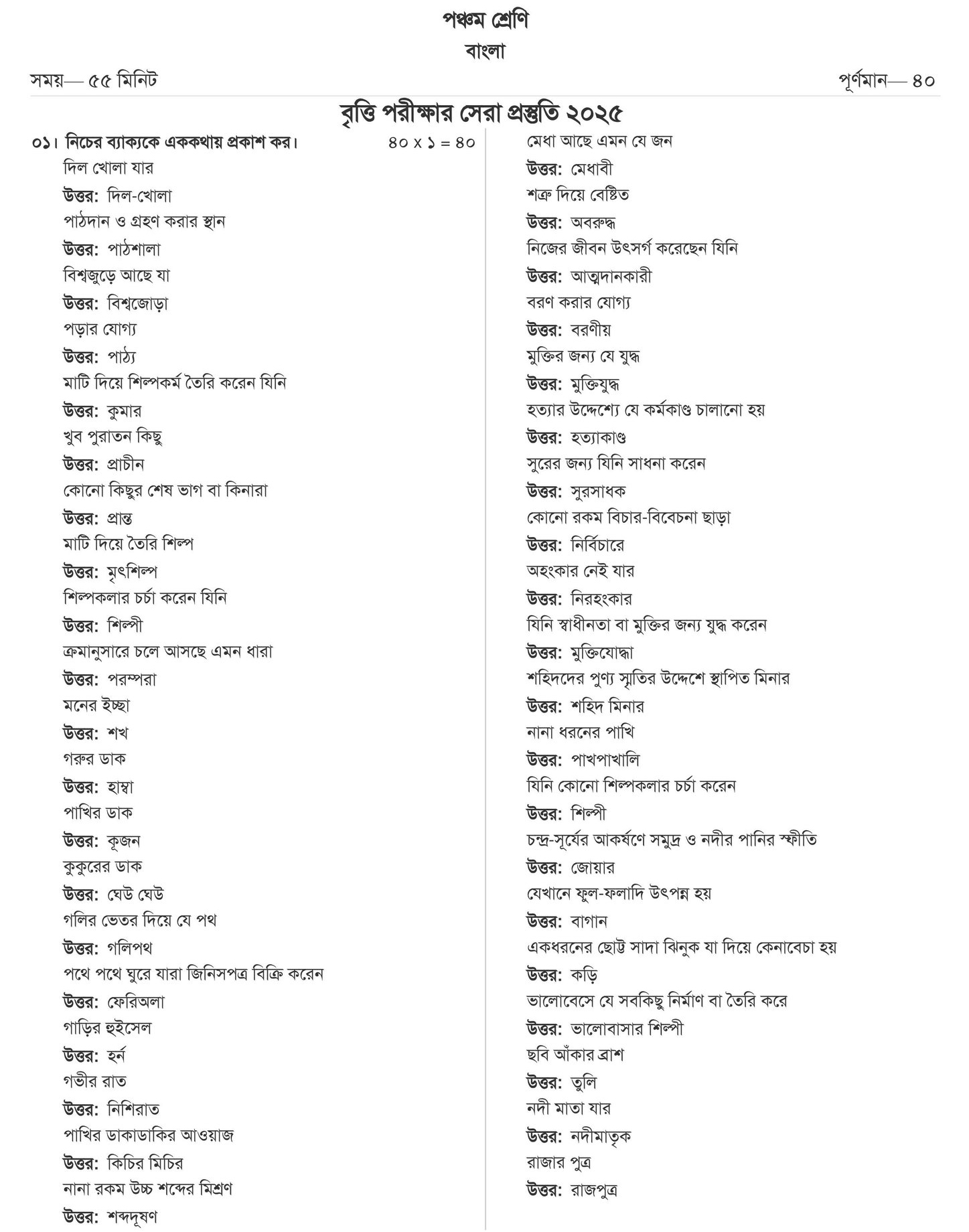 প্রশ্নোত্তরগুলো শুধু তৃতীয়, চতুর্থ ও পঞ্চম শ্রেণির শিক্ষার্থীদের জন্য